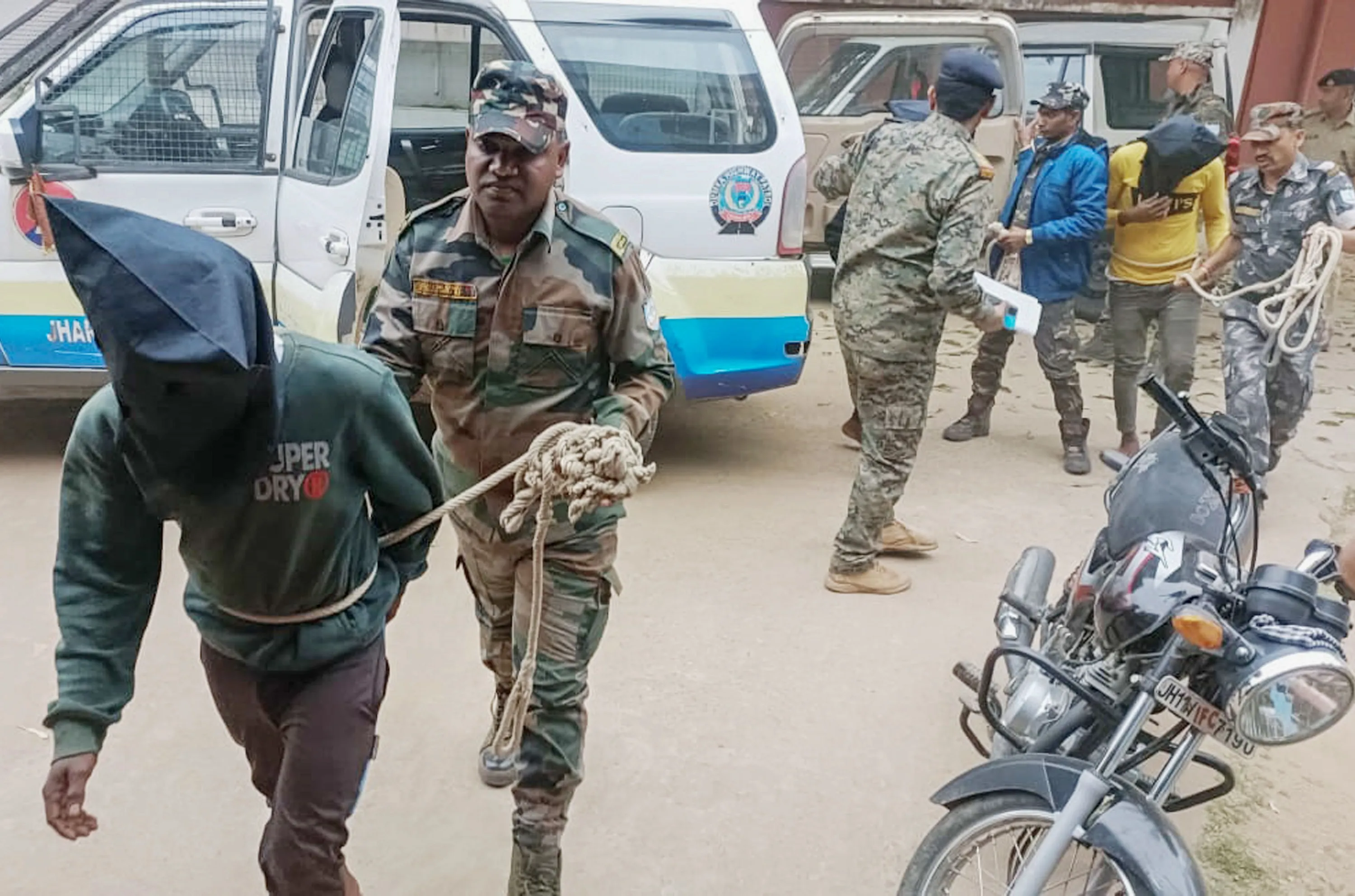 Three men arrested for the alleged gang rape of a Spanish tourist are brought by police to be produced before the Dumka District Court in Dumka, Jharkhand, India, Monday, March 4, 2024. (Photo by Rajesh Kumar Singh/AP Photo)