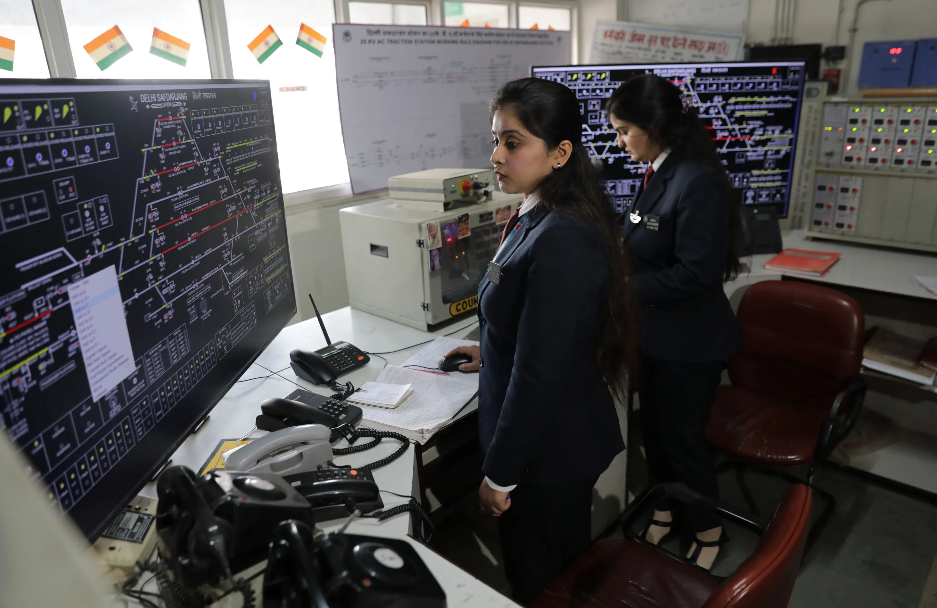 Indian women railways staff work at Safdarjung Railway station in New Delhi, India, 08 March 2024. Northern Railway of Indian railways declared the Delhi Safdarjung railway station as pink station (All women staff) for one day to celebrate the International women day.Also a train operated by all women staff departed from Safdarjung railway station on 08 March. International Women's Day is observed annually on 08 March across the world. (Photo by Rajat Gupta/EPA/EFE)