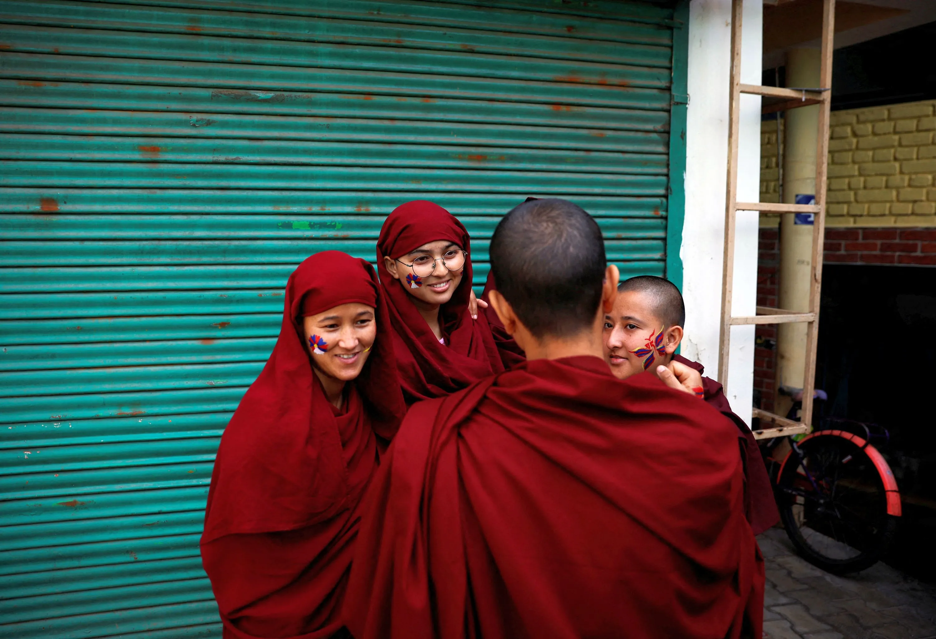 Tibetan nuns wait for the protest march to start, held to mark the 65th anniversary of the Tibetan uprising against Chinese rule, in the northern hill town of Dharamsala, India, on March 10, 2024. (Photo by Adnan Abidi/Reuters)