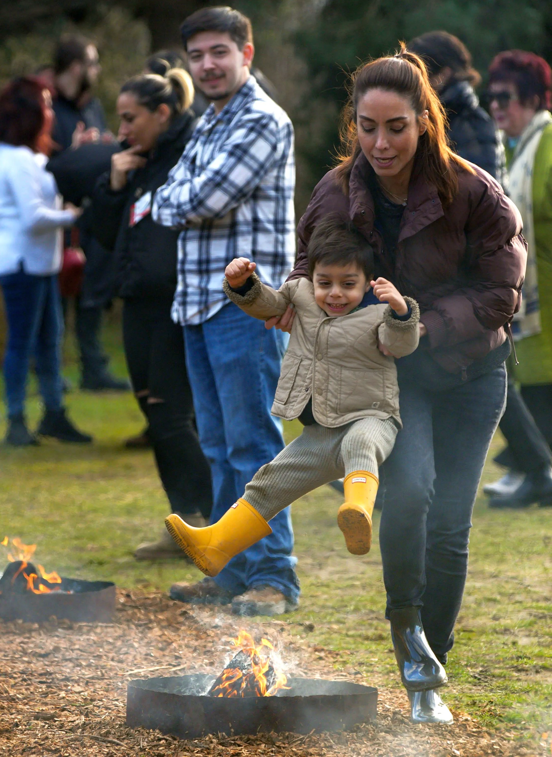 People leap over a bonfire during a fire festival at Ambleside Park in West Vancouver, British Columbia, Canada, on March 12, 2024. The festival was held by the local Iranian community to celebrate the upcoming Nowruz, the Iranian New Year. (Photo by Xinhua News Agency/Rex Features/Shutterstock)