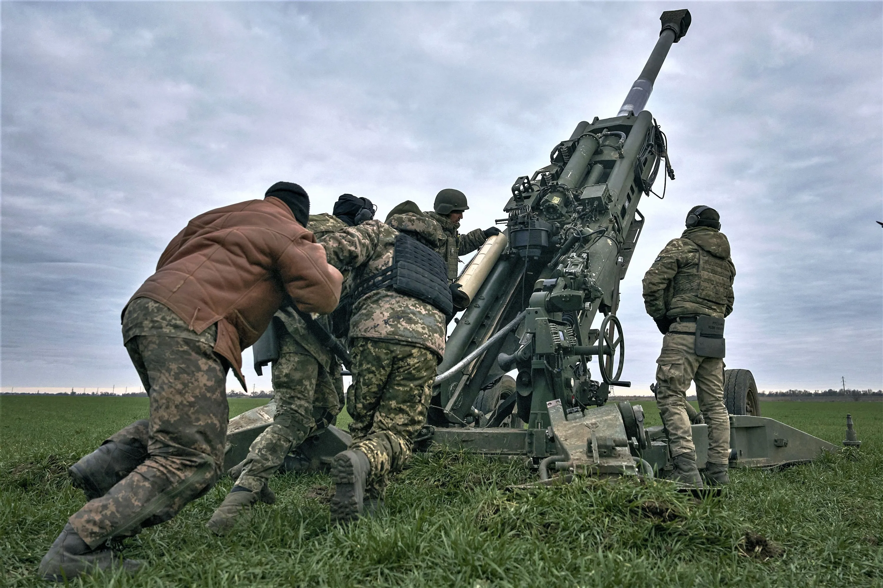 Ukrainian soldiers prepare a U.S.-supplied M777 howitzer to fire at Russian positions in Kherson region, Ukraine, January 9, 2023. (Photo by Libkos/AP Photo)