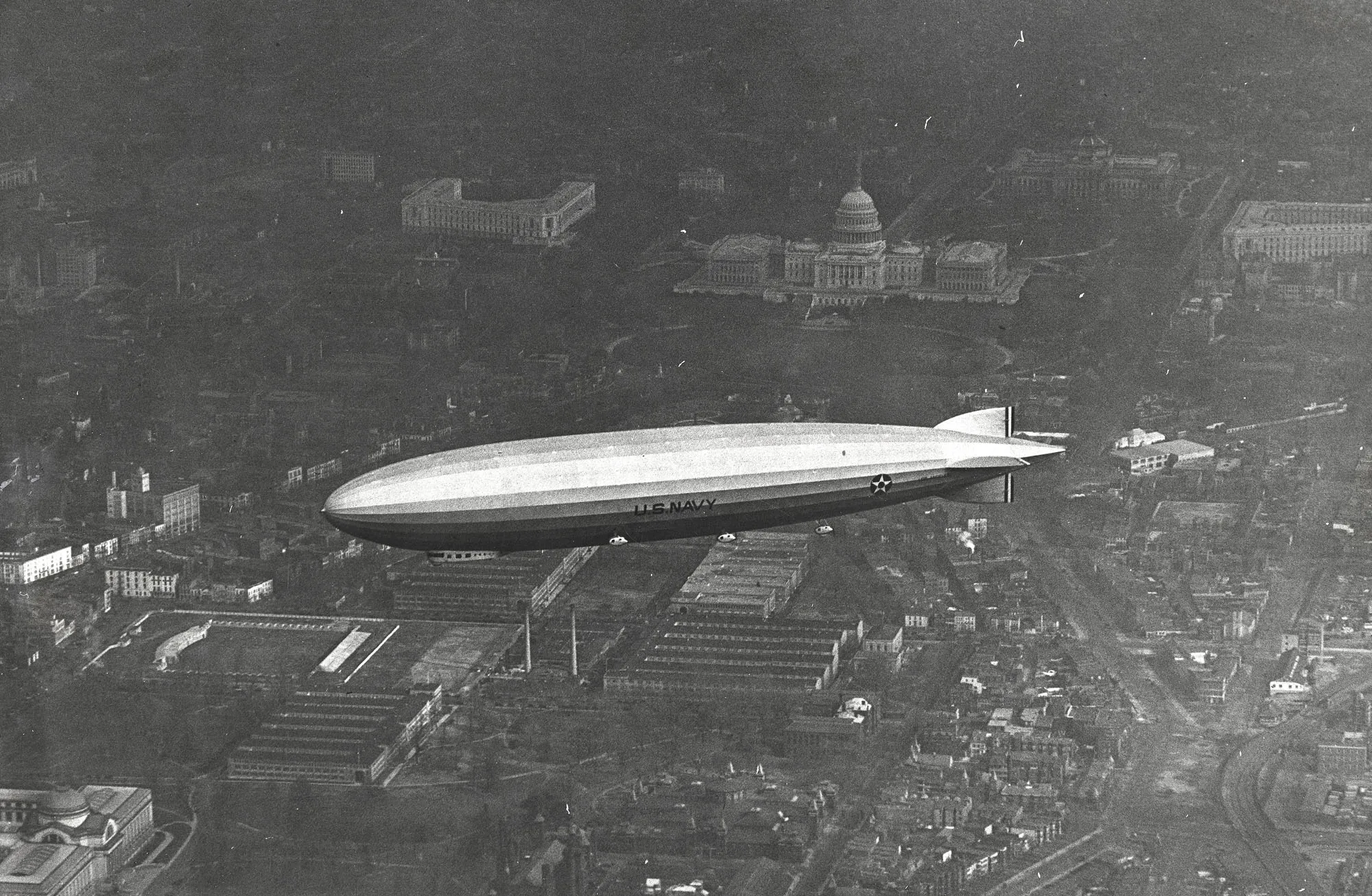 Los Angeles, November 1924. Photograph shows the USS Los Angeles in flight over Washington, D.C., with the U.S. Capitol in the background. (Photo by Library of Congress)