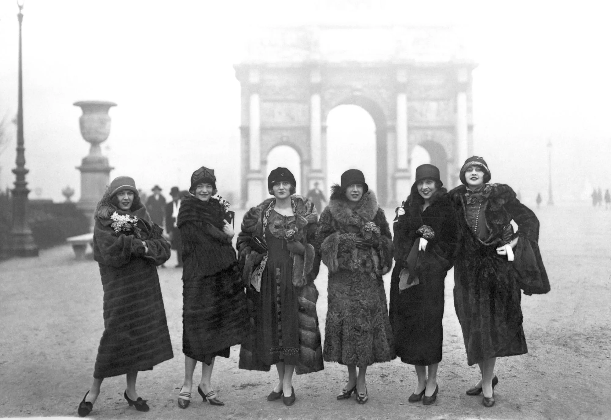 Left to right are Nina Byron, Sybil Wilson, Ruth Fallows, Helen MacDonald, Grace Girard and Yvonne Hughes, members of the Follies who have scored a sensational triumph here. They are appearing at the New Moulin Rouge Revue and all Paris is agog with their beauty and grace. 1924. (Phoot by Bettmann Archive)