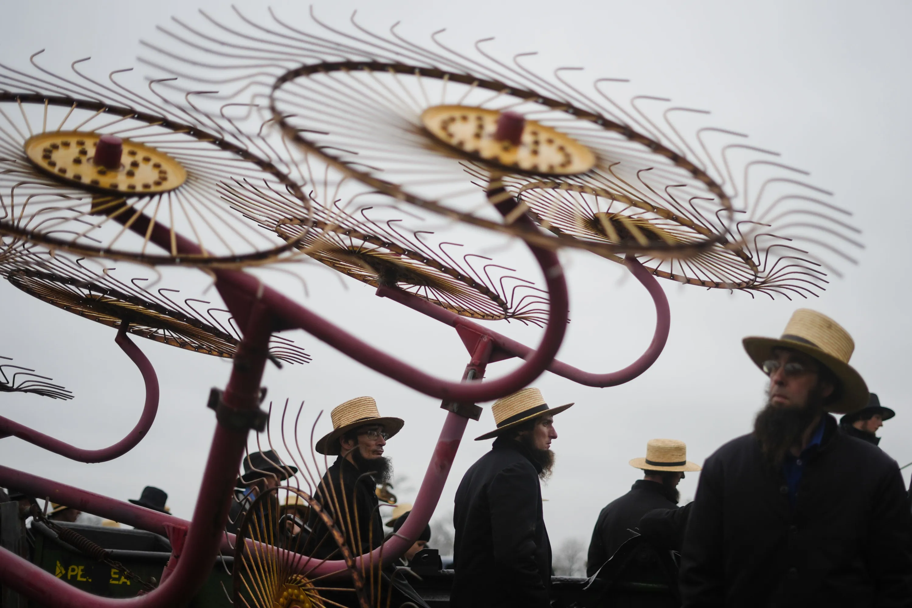 People gather for an auction of farm equipment during 56th annual mud sale to benefit the local fire department in Gordonville, Pa., Saturday, March 9, 2024. Mud sales are a relatively new tradition in the heart of Pennsylvania's Amish country, going back about 60 years and held in early spring as the ground begins to thaw but it's too early for much farm work. (Photo by Matt Rourke/AP Photo)
