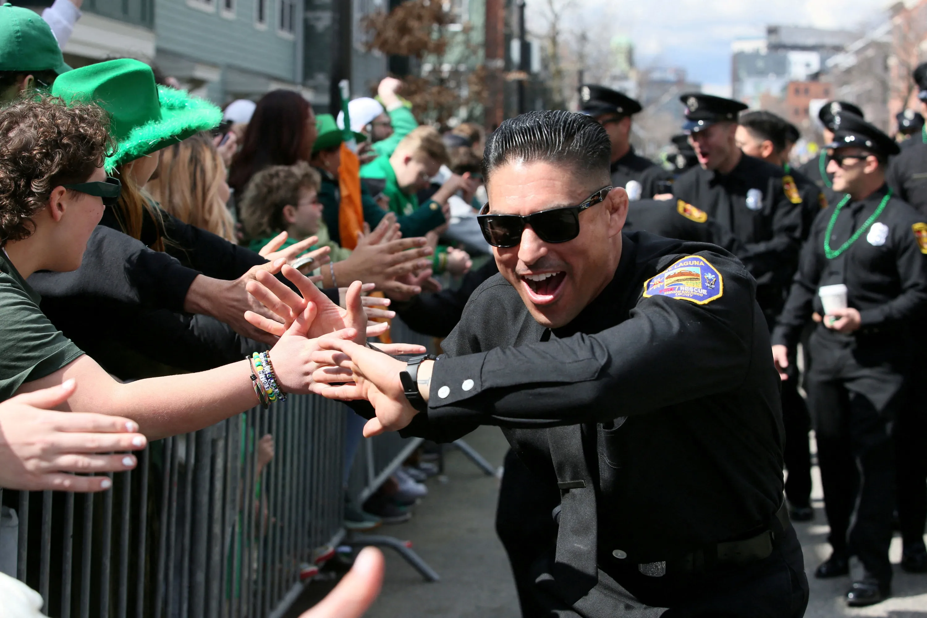 Parade participants celebrate and march during the St. Patrick’s Day Parade in the South Boston neighborhood, in Boston, Massachusetts on March 17, 2024. (Photo by Lauren Owens Lambert/Reuters)
