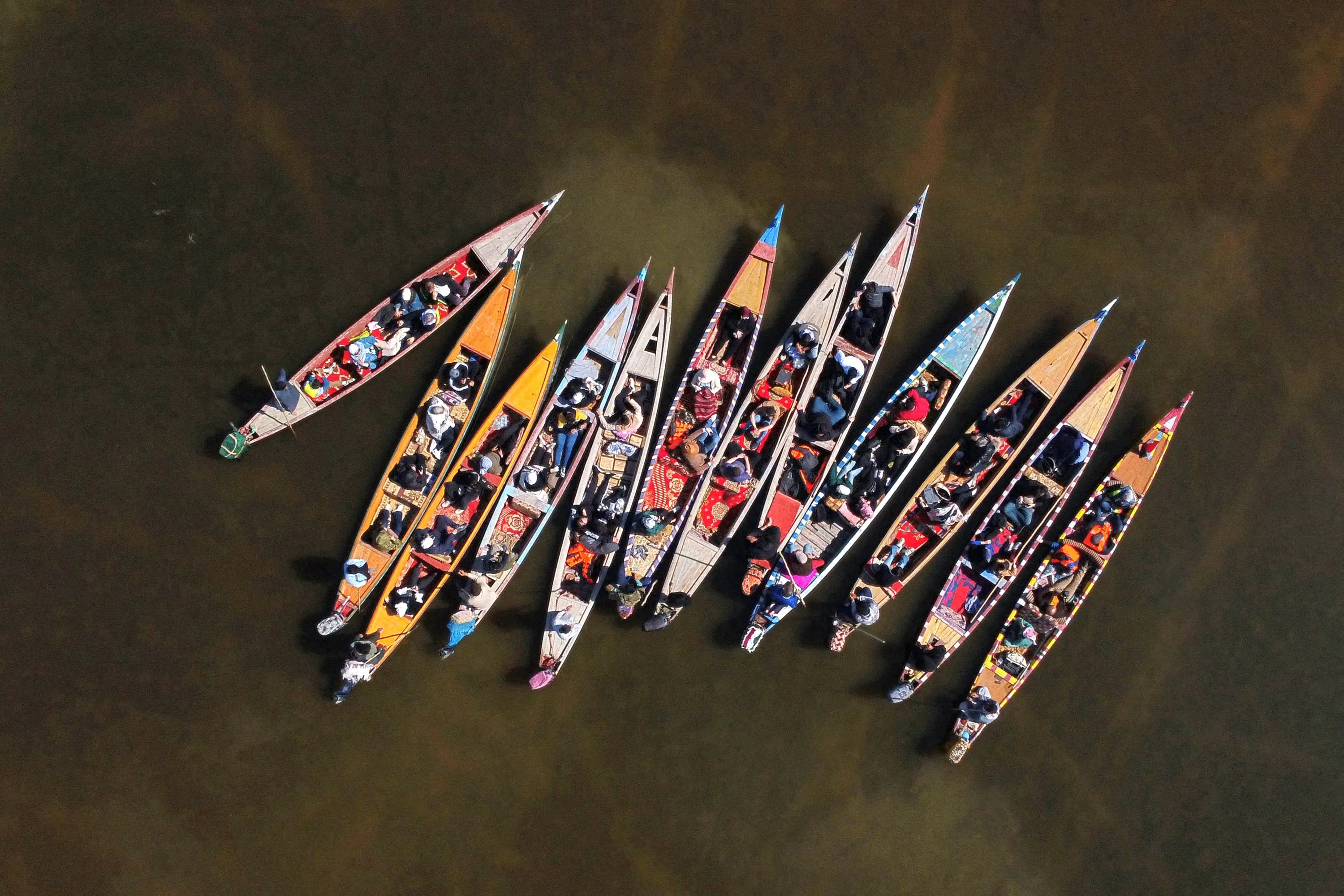 Traditional boats are bunched up in Iraq's central Mesopotamian marshes on Saturday, March 2, 2024. The marshes have seen abundant rainfall lately after a long period of drought. (Photo by Asaad Niazi/AFP Photo)