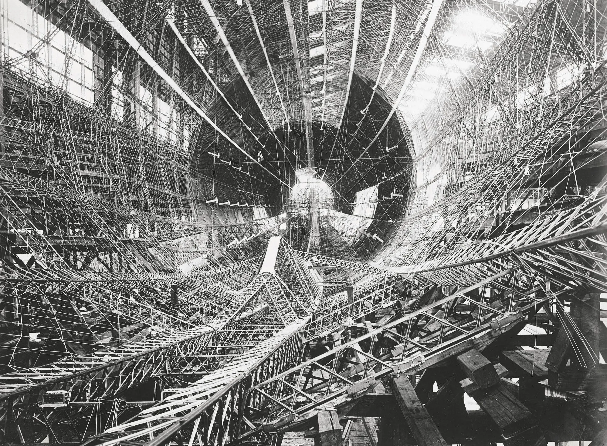 An interior view of the rigid airship USS Shenandoah, under construction at the Naval Air Station in Lakehurst, New Jersey, circa 1922 (Photo by Library of Congress)