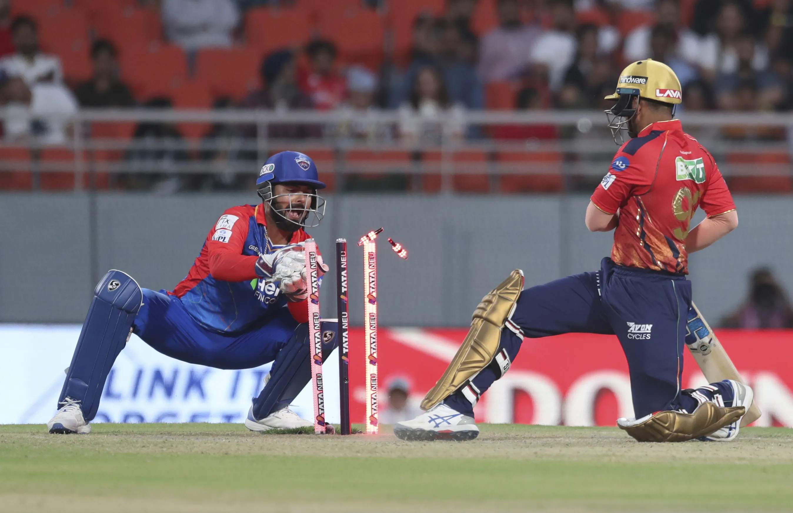 Delhi Capitals' wicketkeeper Rishabh Pant, left, stumps out Punjab Kings' Jitesh Sharma during the Indian Premier League cricket tournament match between Delhi Capitals and Punjab Kings in Mullanpur, Punjab, India, Saturday, March 23, 2024. (Photo by Pankaj Nangia/AP Photo)