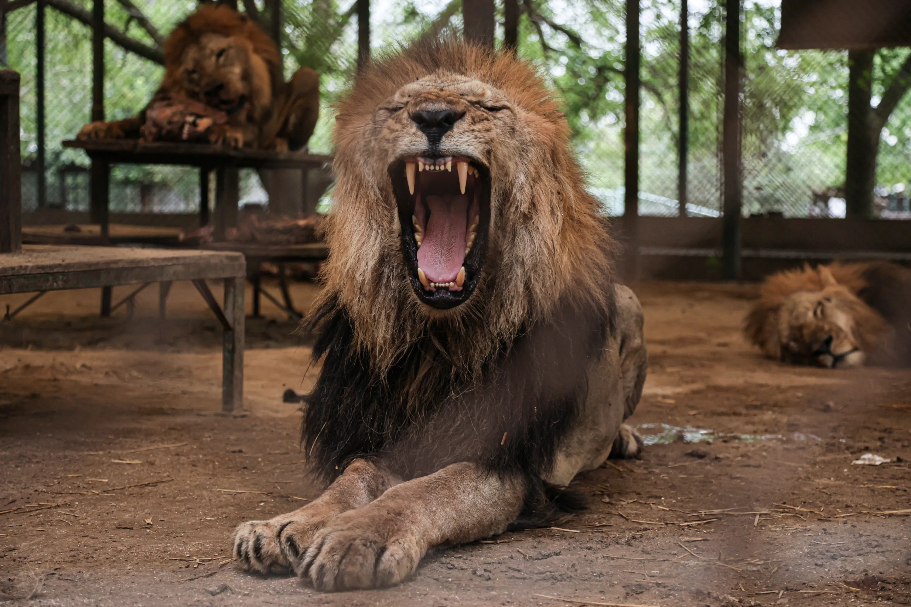 A view of a lion at Lujan Zoo, which hosts animals rescued from circuses, animal trafficking and private collections in Buenos Aires, Argentina on March 16, 2024. The place had more than 400 animals between native and exotic species, in the same zoo where several animals were raised that were exhibited to the people and the main attraction was that people could enter and pet the big cats inside the cages, which was unique in the country. Losing its main source of money due to severe effects of pandemic, the zoo is abandoned to their fate which led to its closure. The owner of the zoo and an Ad-honorem employee are in charge of maintaining the animals however because of the expenses, the owner get rid of his collection of vehicles, including a classic car that belonged to the Argentine tango icon Carlos Gardel. (Photo by Luciano Gonzalez/Anadolu via Getty Images)