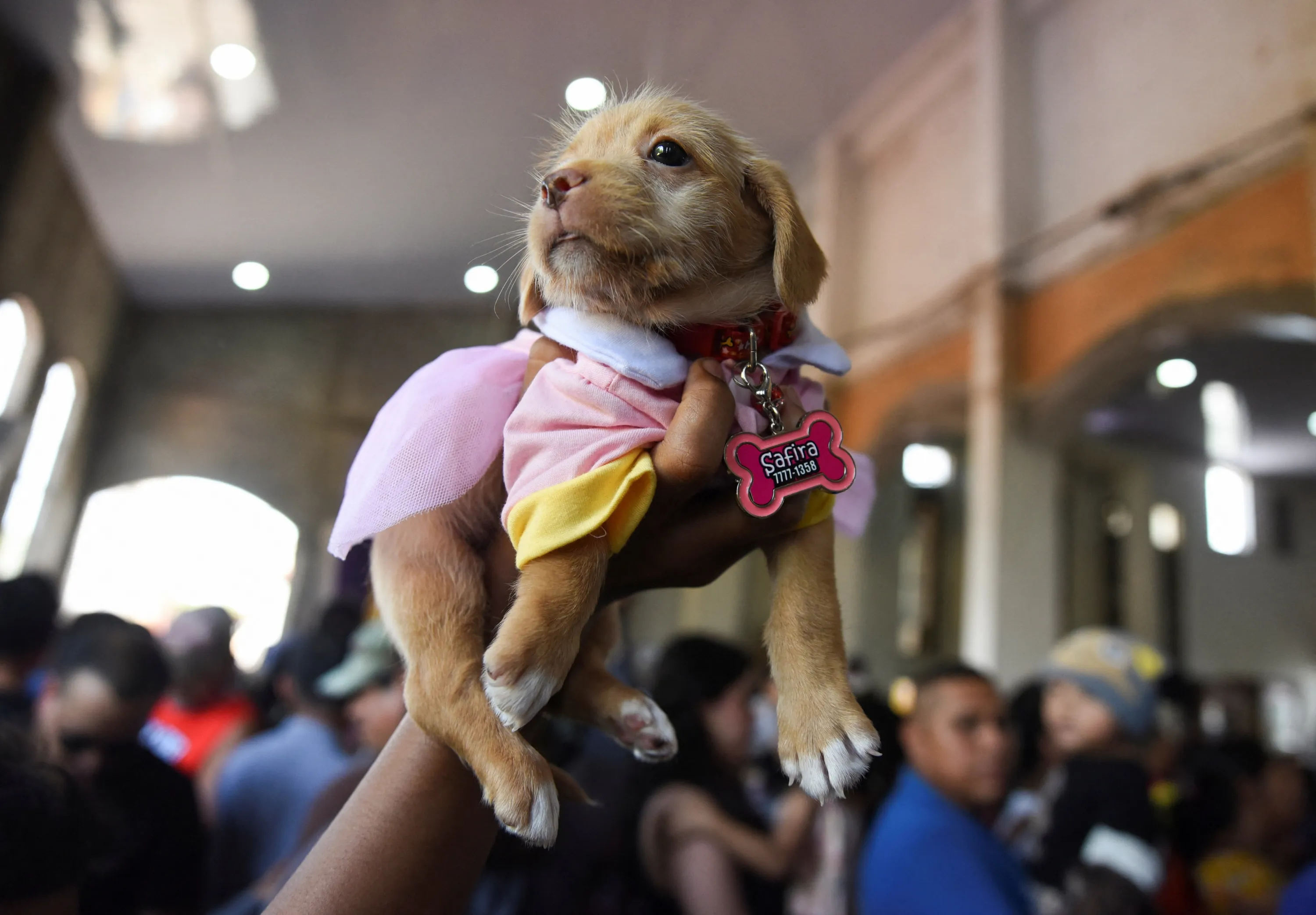 A person holds up a dog during a mass in honour of Saint Lazarus at the Magdalena church in the indigenous community of Monimbo in Masaya, Nicaragua on March 17, 2024. (Photo by Maynor Valenzuela/Reuters)