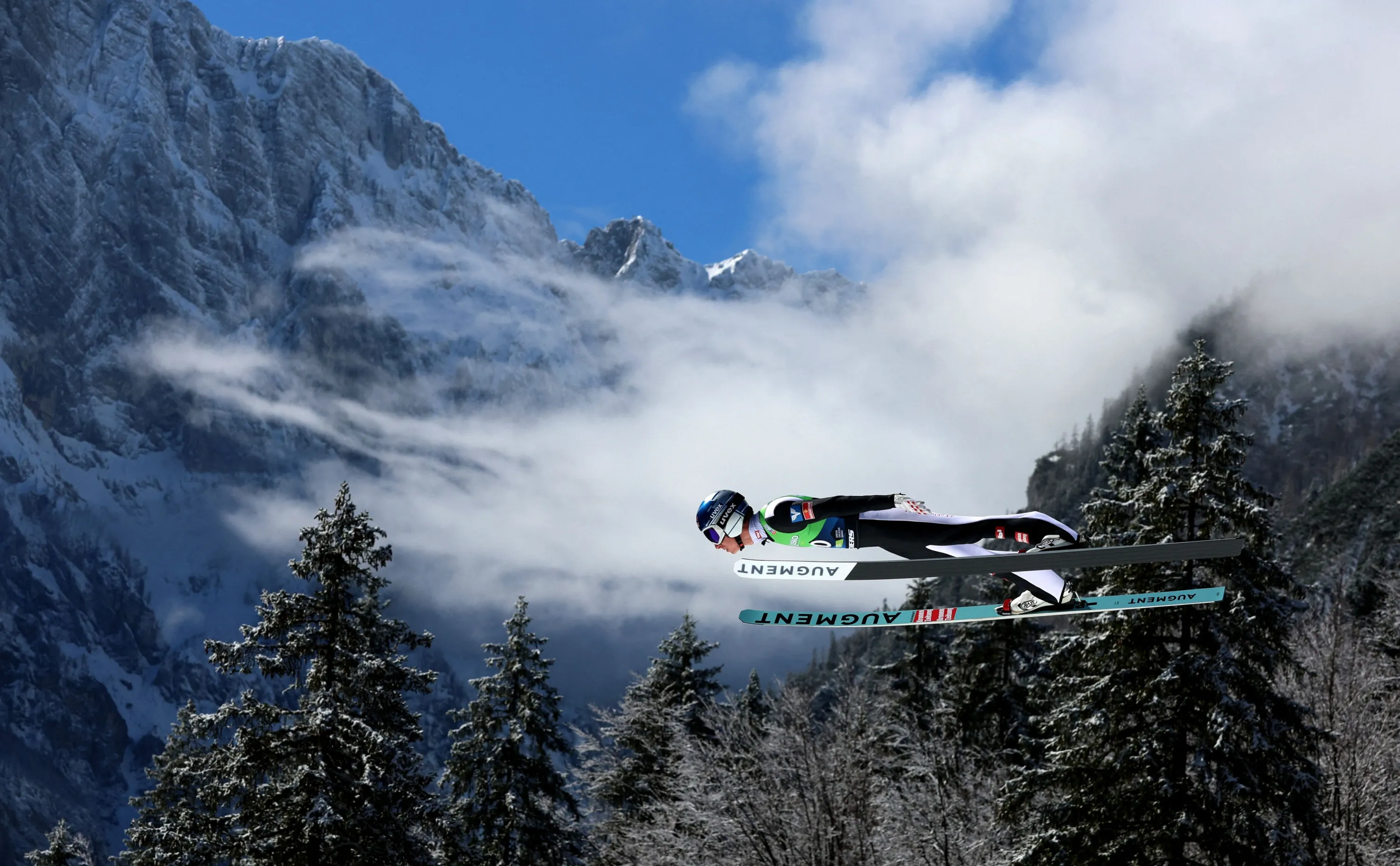 Austria's Daniel Tschofenig competes during the men's individual ski jumping of the FIS Ski Jumping World Cup in Planica, Slovenia on March 24, 2024. (Photo by Borut Zivulovic/Reuters)