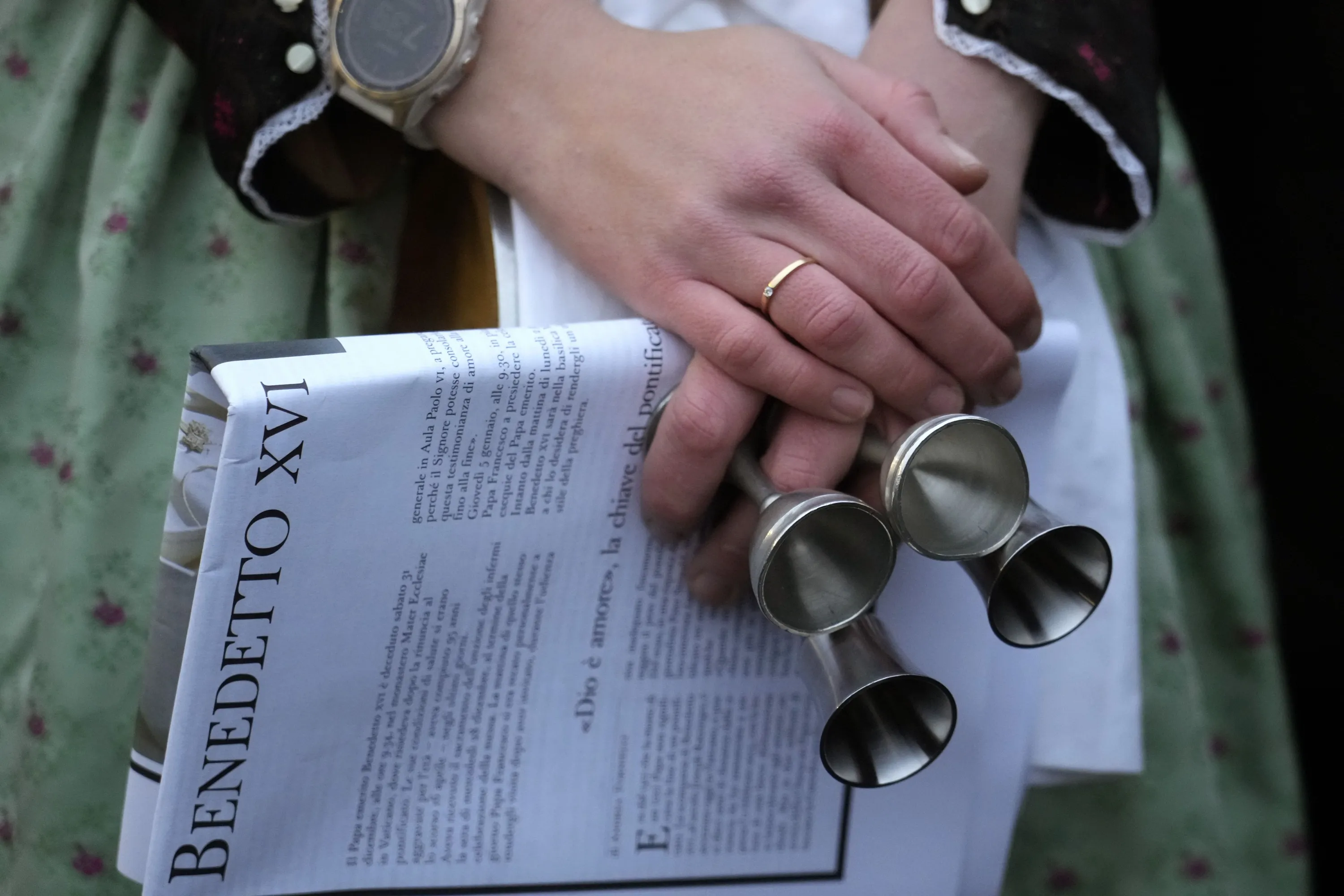 A musician from Bavaria, Germany, arrives into St. Peter's Square at the Vatican, ahead of the funeral mass for late Pope Emeritus Benedict XVI, Thursday, January 5, 2023. Benedict died at 95 on Dec. 31 in the monastery on the Vatican grounds where he had spent nearly all of his decade in retirement, his days mainly devoted to prayer and reflection. (Photo by Gregorio Borgia/AP Photo)