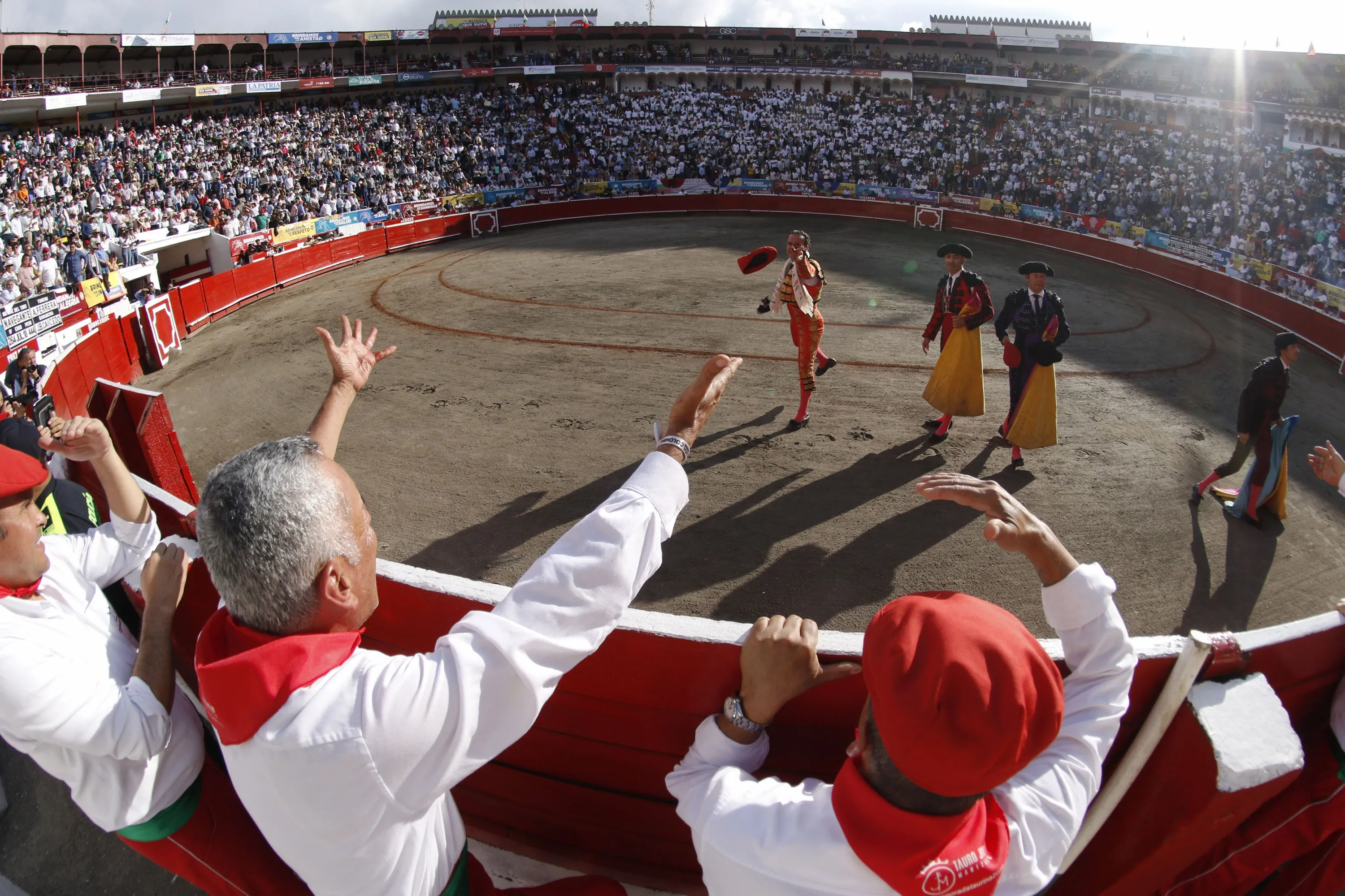 The Spanish bullfighter Antonio Ferrera, takes a tour of the ring after the fight of his first bull of the afternoon called Cerillero, to which he cut off two ears, during a bullfight at the Manizales Fair, in the department of Caldas, Colombia, 04 January 2023. (Photo by Jhon Jairo Bonilla/EPA/EFE/Rex Features/Shutterstock)