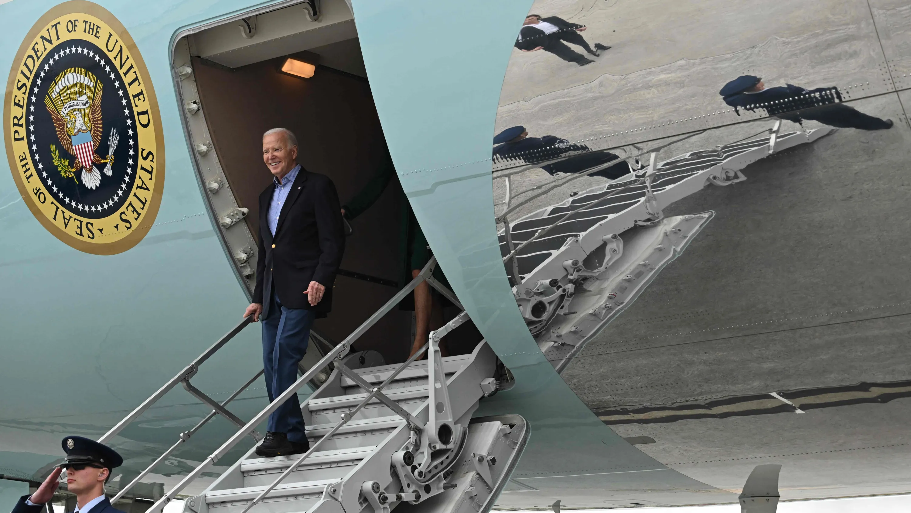 US President Joe Biden arrives at Atlanta Hartsfield-Jackson International Airport in Atlanta, Georgia, on March 9, 2024. President Biden and First Lady Jill Biden are attending campaign events in Atlanta. (Photo by Jim Watson/AFP Photo)