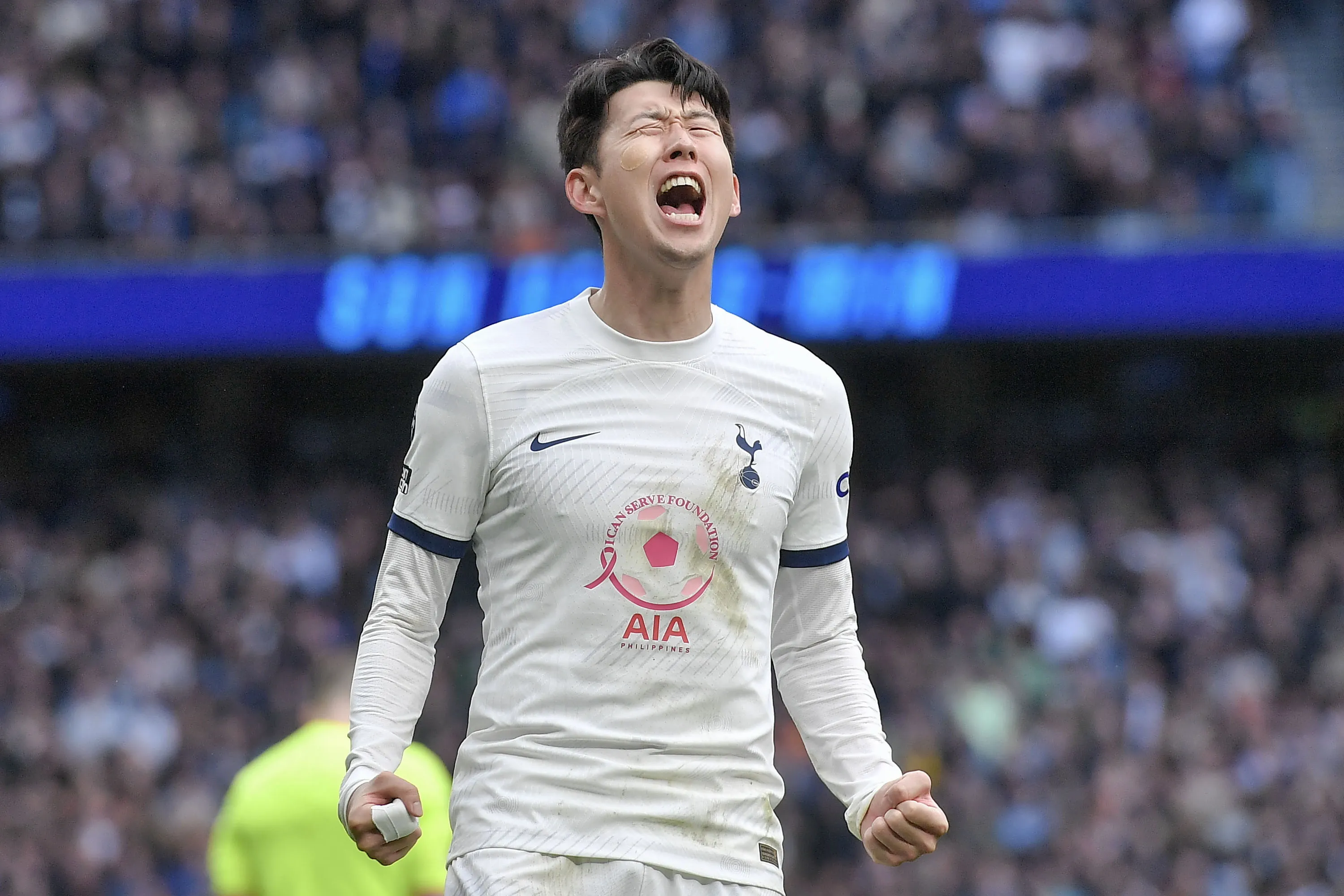 Son Heung-Min of Tottenham Hotspur celebrates after scoring the 2-1 goal during the English Premier League match between Tottenham Hotspur and Luton Town in London, Britain, 30 March 2024. (Photo by Vince Mignott/EPA)