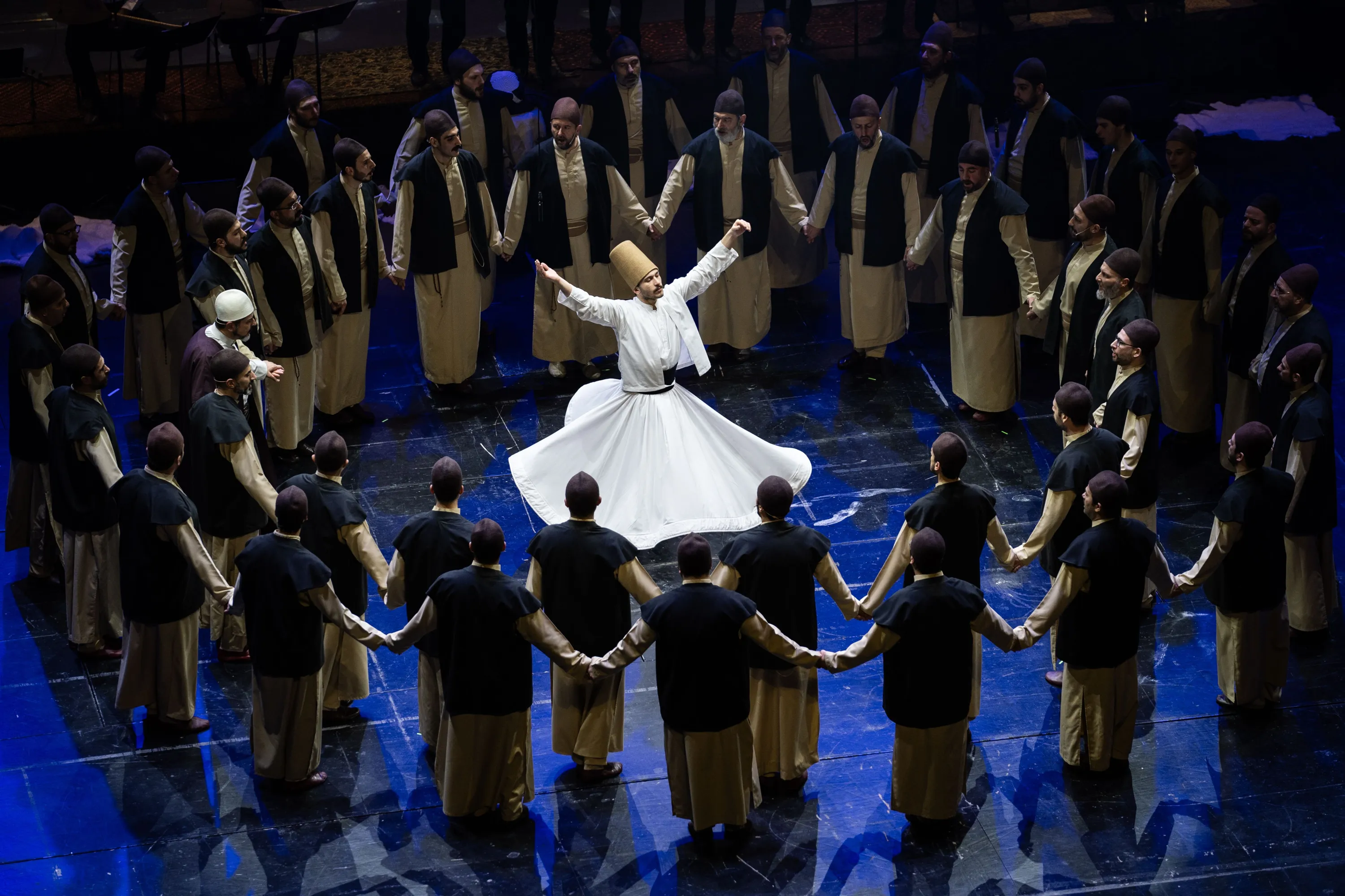 The “Sema-Semah-Devran” event, which was prepared to keep the tradition of Sufism alive, is performed at Ataturk Cultural Center (AKM) in Istanbul, Turkiye on March 28, 2024. (Photo by Hakan Akgun/Anadolu via Getty Images)