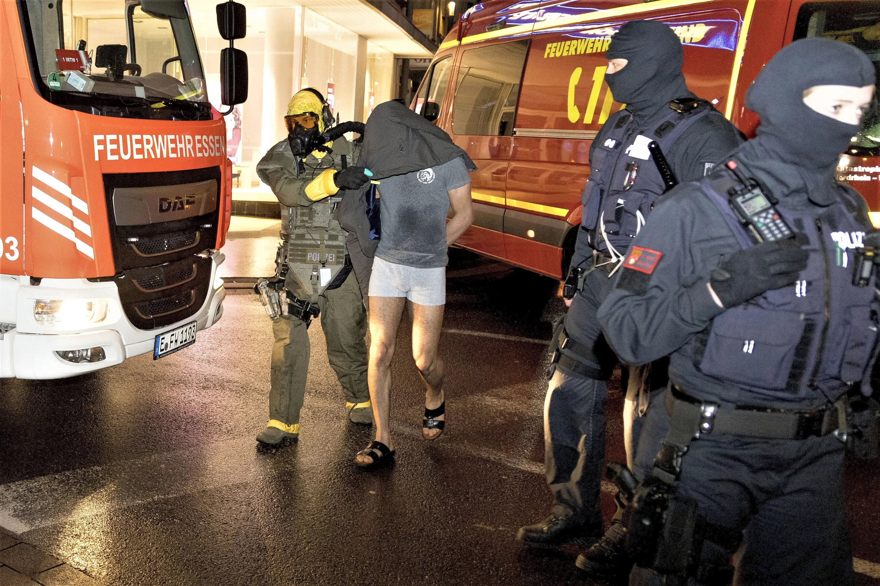 A man is taken into custody by a Special Operations Command in Castrop-Rauxel, Sunday, January 8, 2023. In Castrop-Rauxel, there was a large-scale operation by the police and fire department on Saturday evening. A special task force (SEK) was also on the scene, a police spokeswoman told the German Press Agency on Saturday evening. (Photo by Karsten Wickern/dpa via AP Photo)