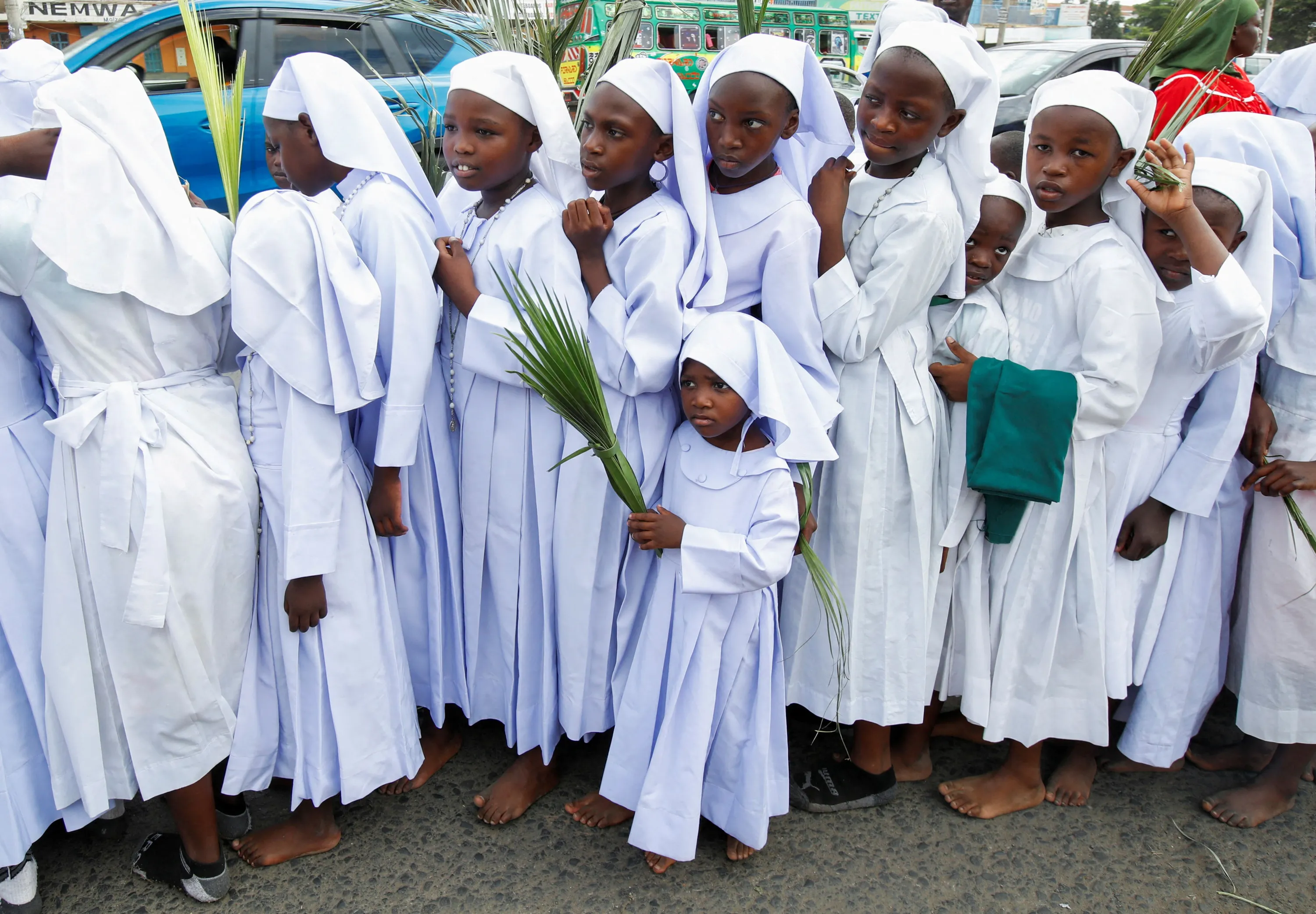 Worshippers carry palm leaves during a Palm Sunday procession at the St. Mary's, Legio Maria of African Church Mission in Makongeni district of Nairobi, Kenya on March 24, 2024. (Photo by Monicah Mwangi/Reuters)