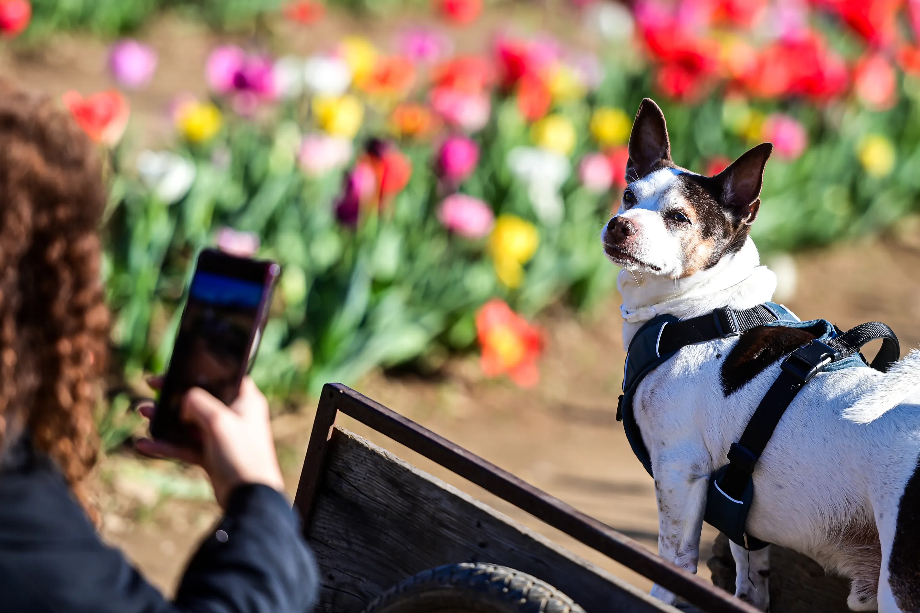 A visitor picks up tulips in a “Tulipani Italiani” field in Arese, near Milan, Italy on April 2, 2024. Over 500.000 tulips were planted by Dutch couple Edwin Koeman and Nitsuje Wolanios. (Photo by Pier Marco Tacca/Anadolu via Getty Images)