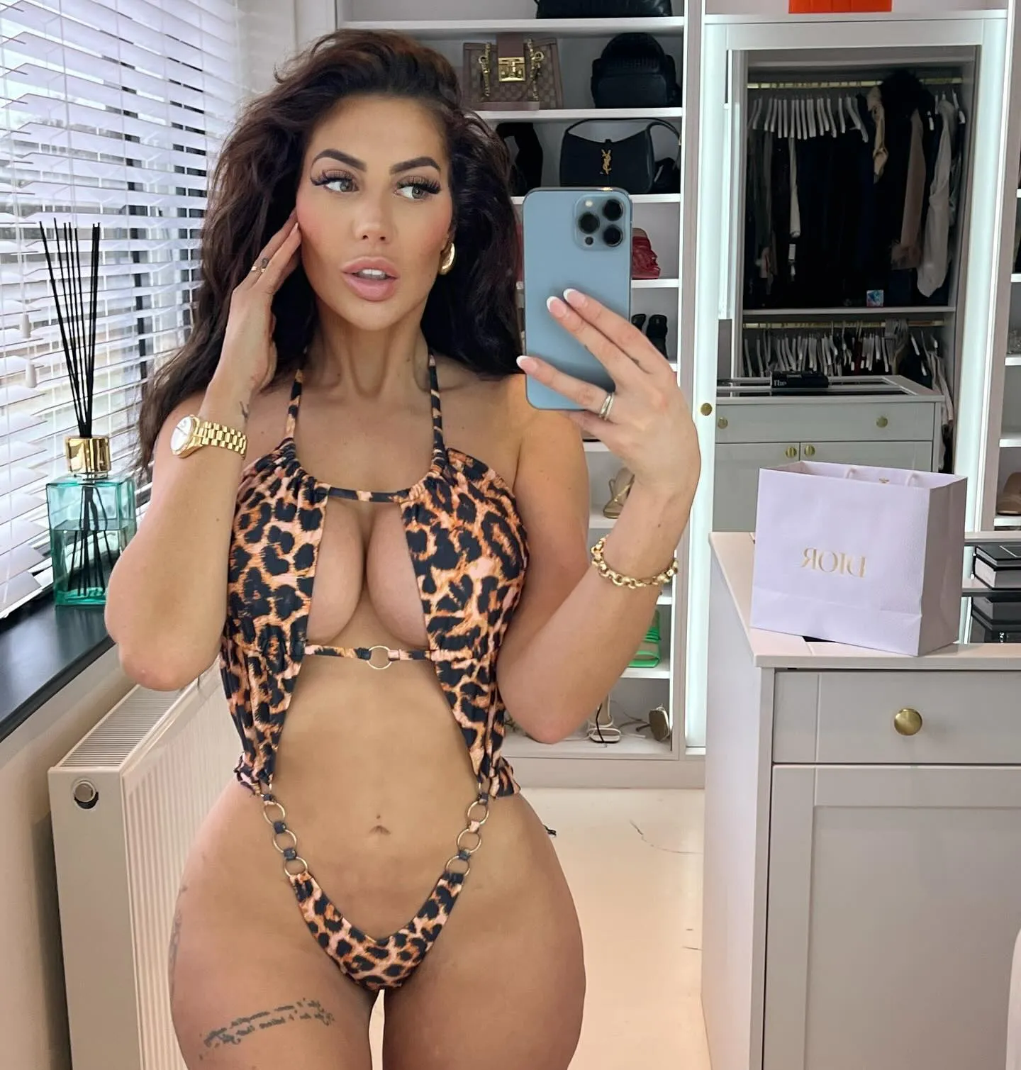 English television personality Chloe Ferry dazzled her Instagram fans as she posed in a cut-out swimsuit. Chloe posed in her dressing room at her Newcastle mansion in the second decade of March 2024. (Photo by Instagram)
