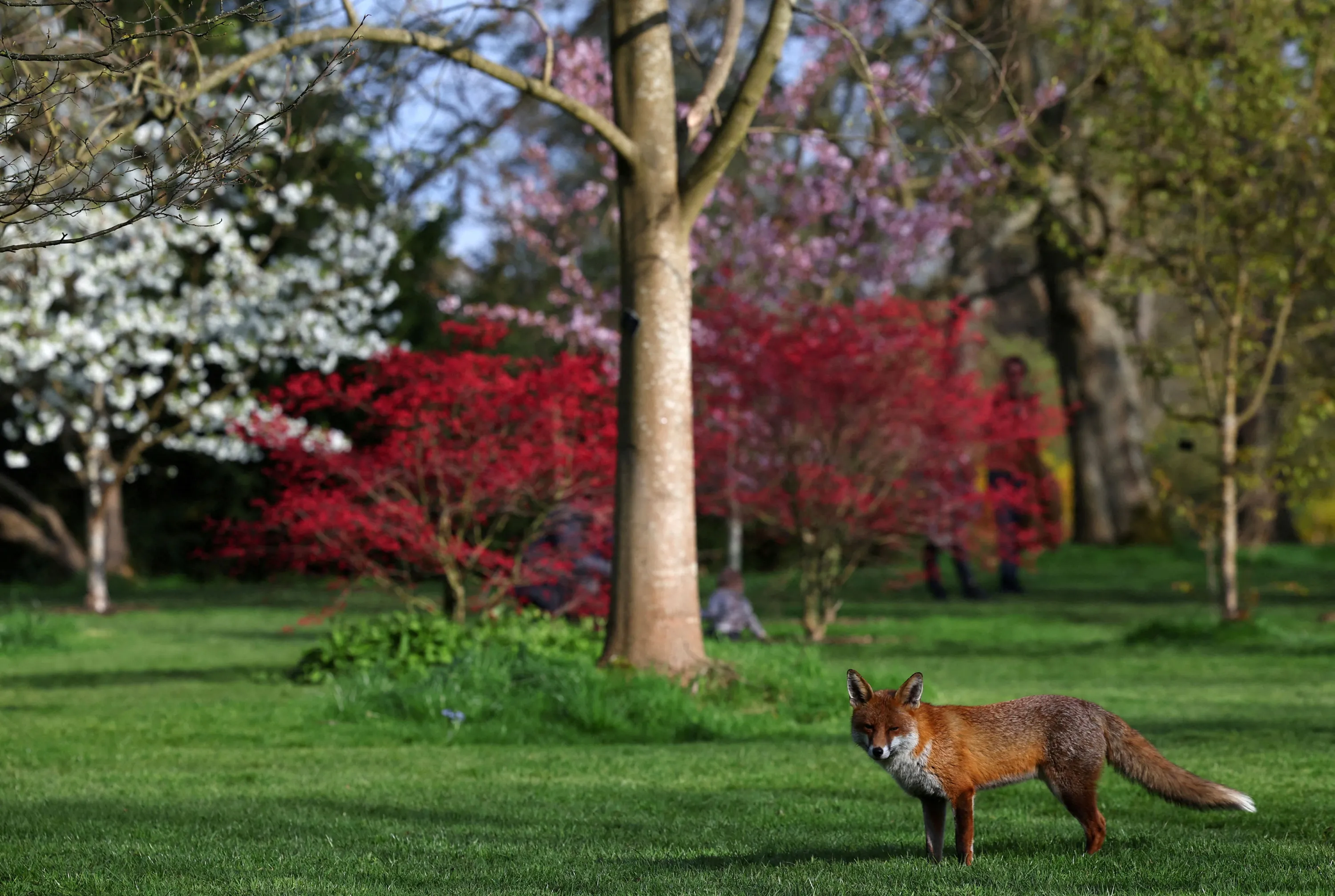 A fox walks near blossoming trees ahead of the “Sounds of Blossom” event at Kew Gardens in London, Britain, on March 21, 2024. (Photo by Toby Melville/Reuters)