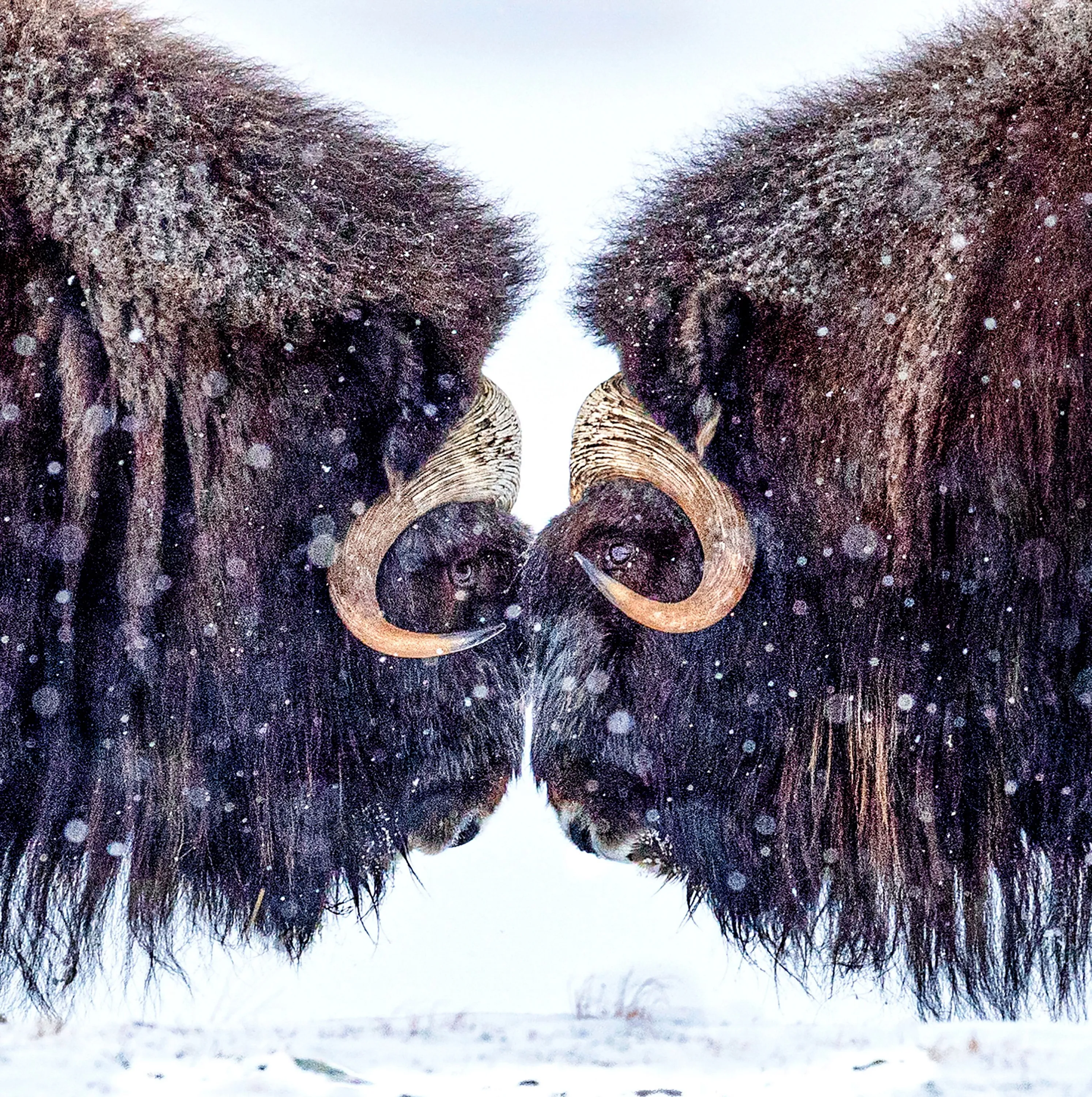 Two musk oxen face off in Dovrefjell–Sunndalsfjella National Park in Norway in March 2024. The males go head to head to measure their strengths against one another. (Photo by Christain Surber/Solent News & Photo Agency)