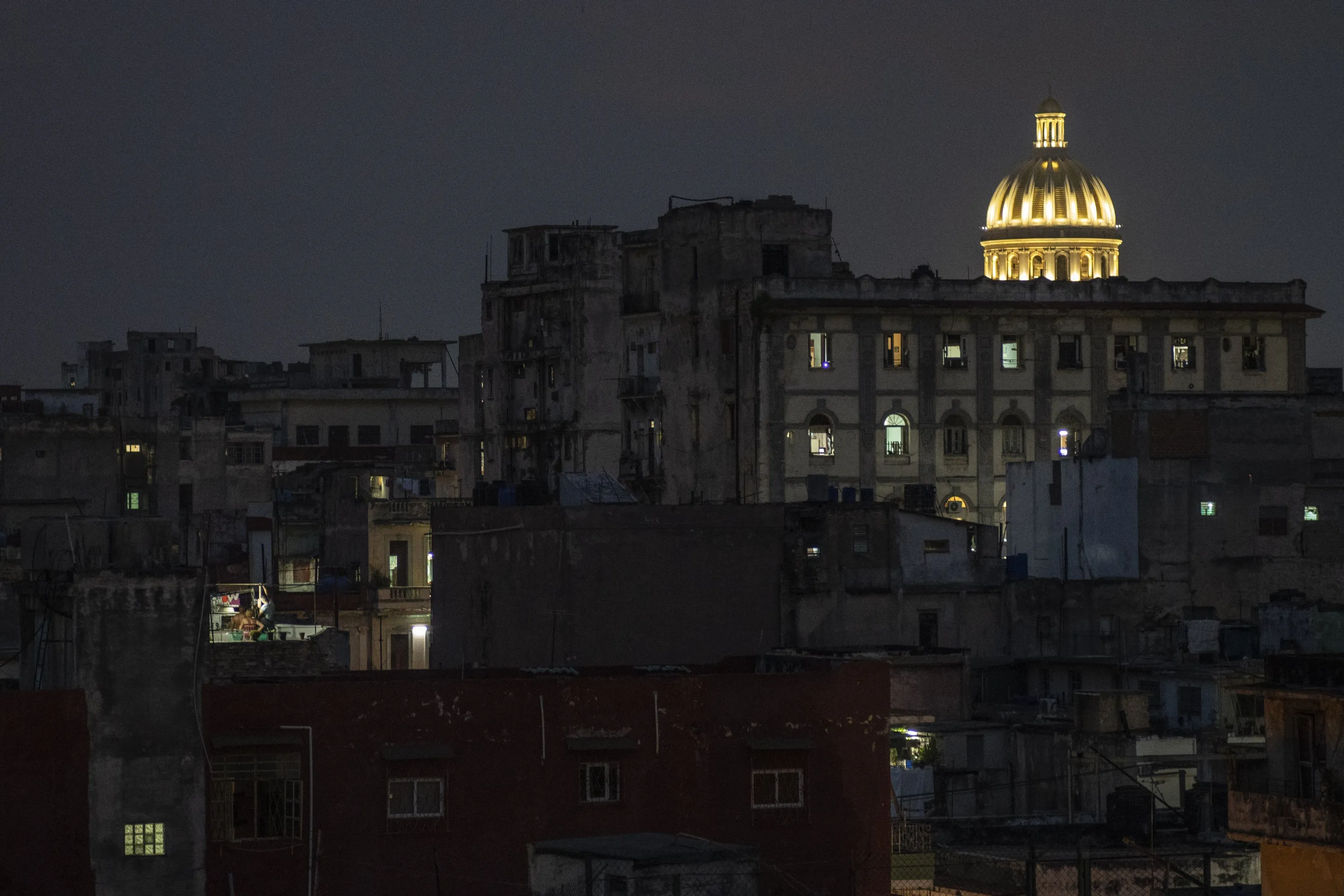 The Capitol dome is illuminated amid residential buildings in downtown Havana, Cuba, late Monday, October 9, 2023. Cuba's housing crisis is one of the most pressing challenges facing the island, where a humid climate, the passage of cyclones and hurricanes, poor maintenance of old buildings and a low completion rate of new ones are usually among the top complaints among residents. (Photo by Ramon Espinosa/AP Photo)