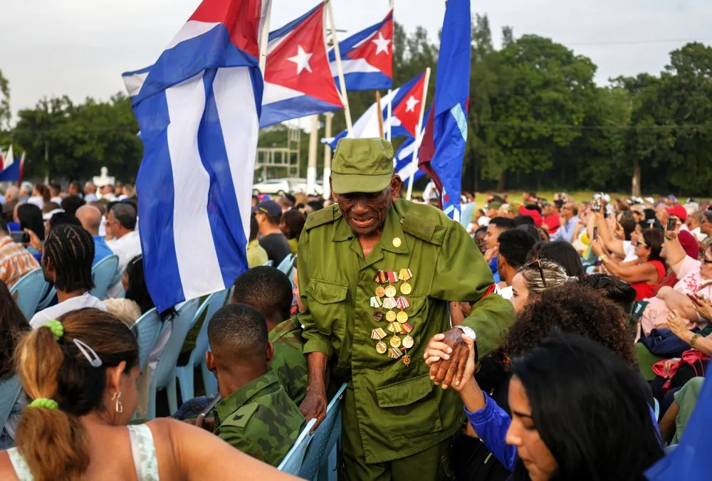 A veteran of the 1959 Cuban Revolution attends a ceremony marking the 65th anniversary of the arrival of Fidel Castro to the capital as head of the rebel army, in Havana, Cuba, Monday, January 8, 2024. Castro and his rebels arrived in Havana via caravan on Jan. 8, 1959, after toppling dictator Fulgencio Batista. (Photo by Ramon Espinosa/AP Photo)