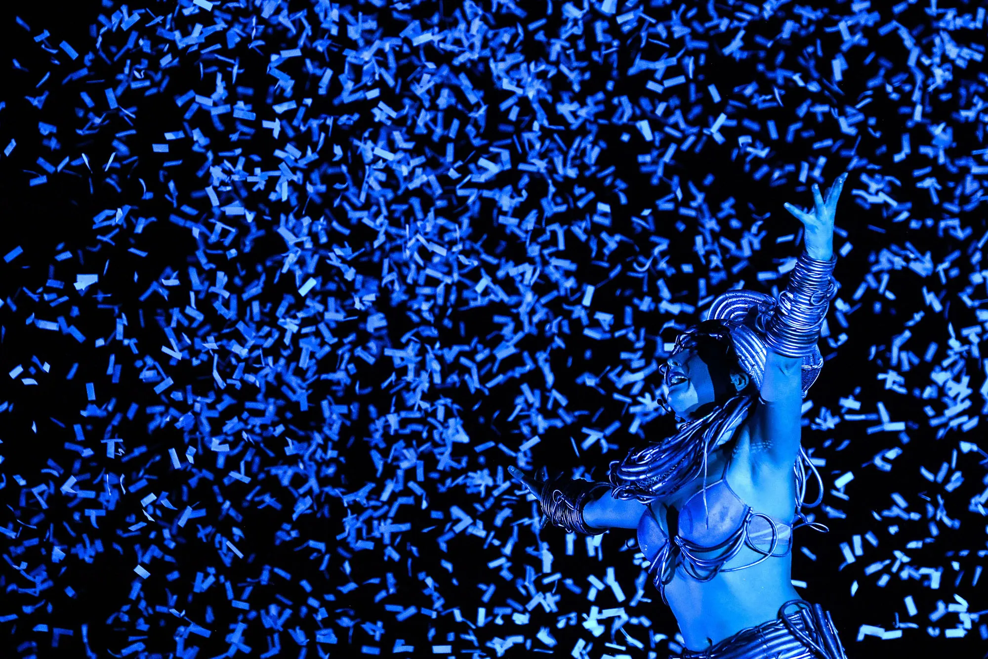 Italian dance company KITONB performs “Carillon, the Flight of Time”, an urban theater show that takes place between the earth and the sky, at the annual “Santiago a Mil” international dance, theater and visual arts festival in Santiago, Chile, Sunday, January 22, 2023. (Photo by Matias Delacroix/AP Photo)