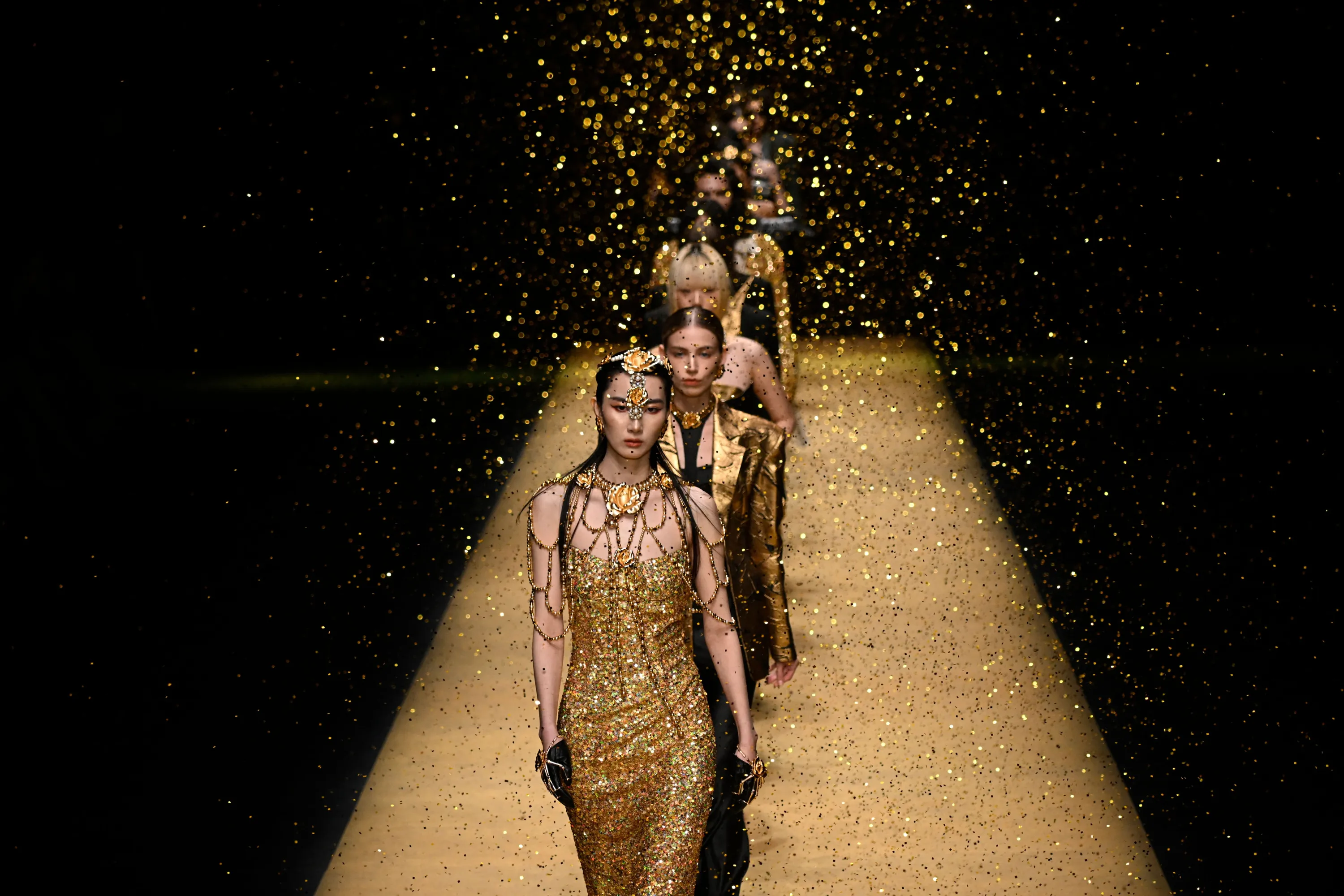 Models display creations from the Maggie Ma collection by Maggie Ma during China Fashion week in Beijing on March 28, 2024. (Photo by Wang Zhao/AFP Photo)