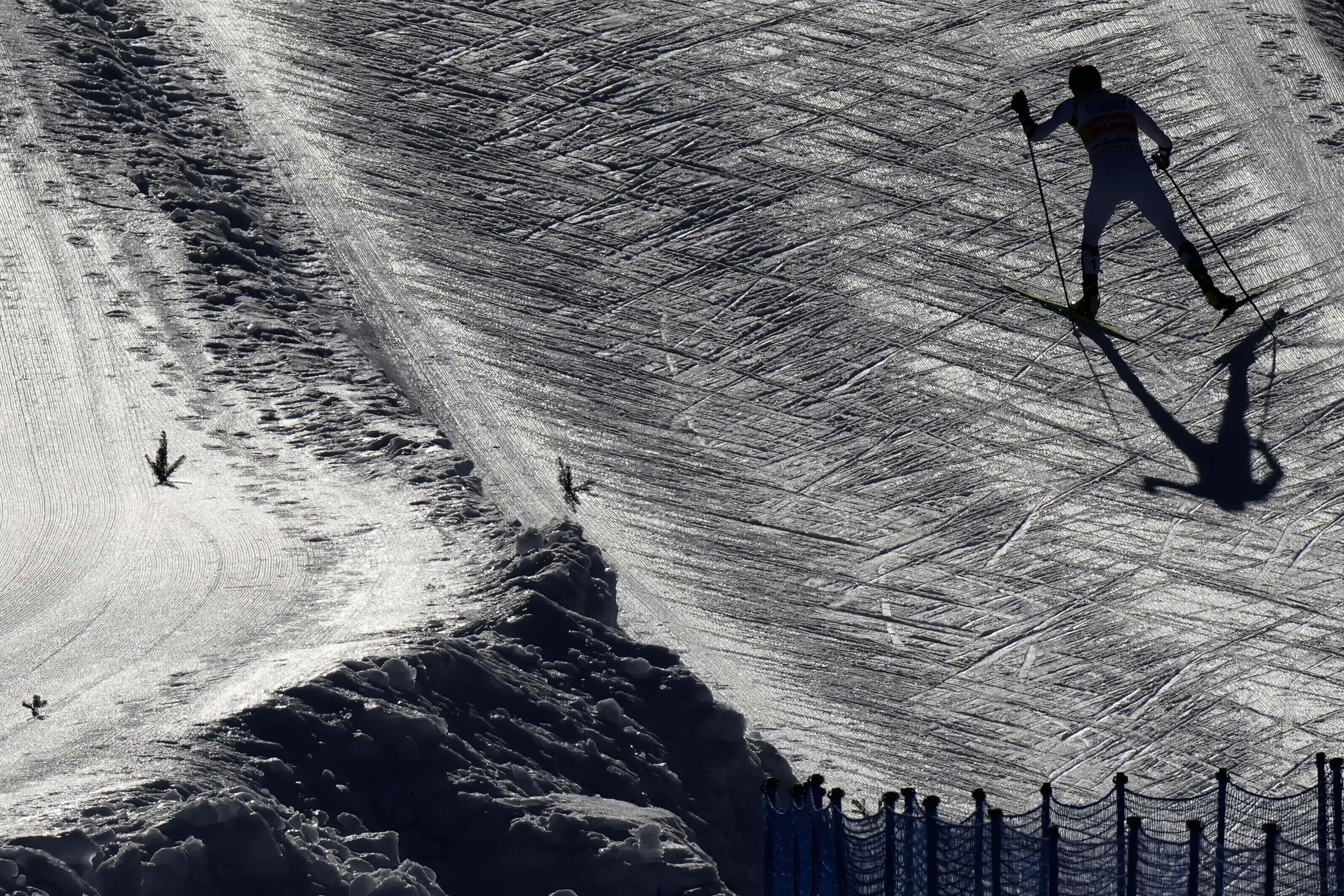 Jarl Magnus Riiber of Norway competes to win the men's cross country section at the Nordic Combined World Cup in Seefeld Austria, Saturday, February 3, 2024. (Photo by Matthias Schrader/AP Photo)