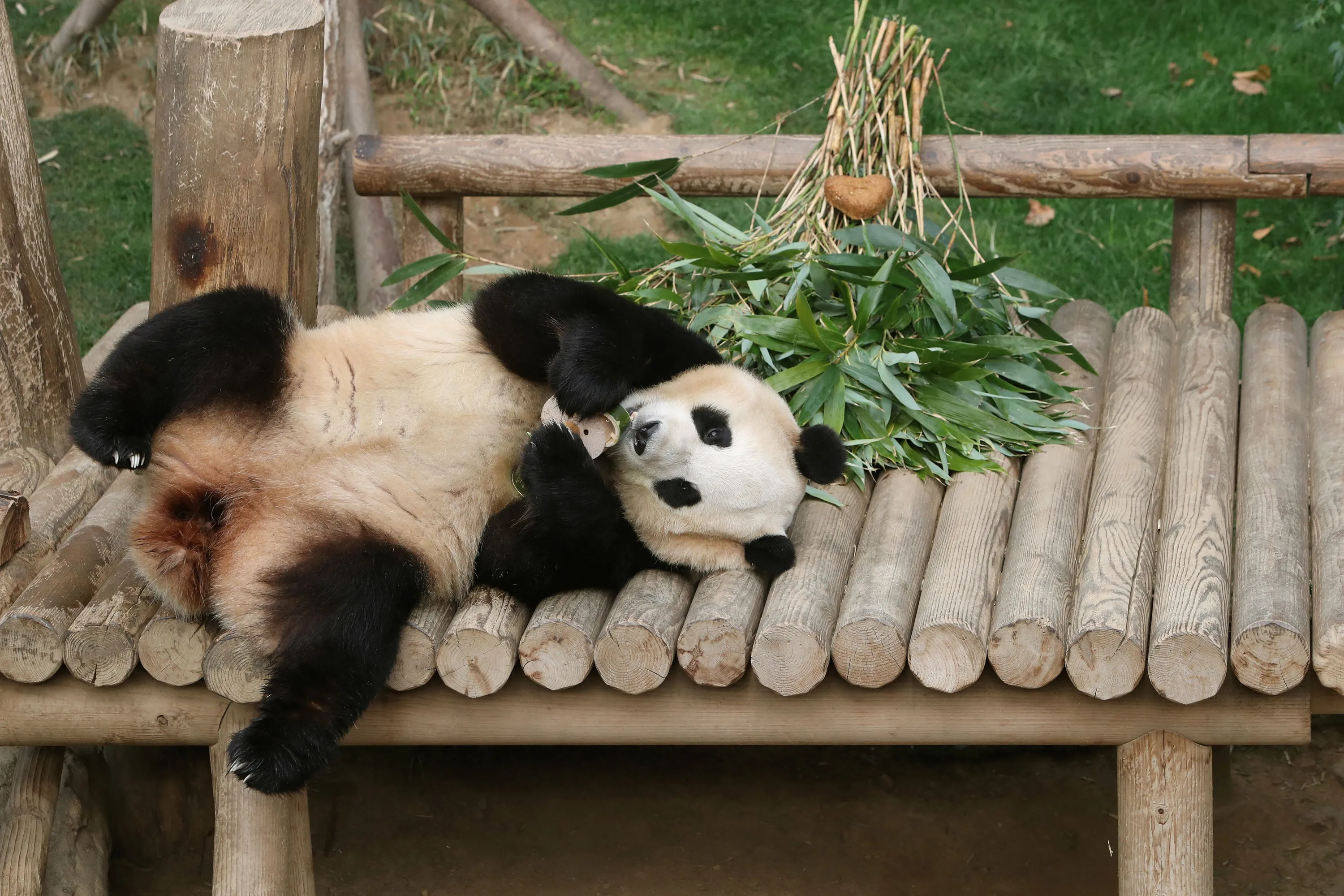 Giant panda Fu Bao rests at Everland amusement park on March 03, 2024 in Yongin, South Korea. (Photo by Chung Sung-Jun/Pool via Reuters)