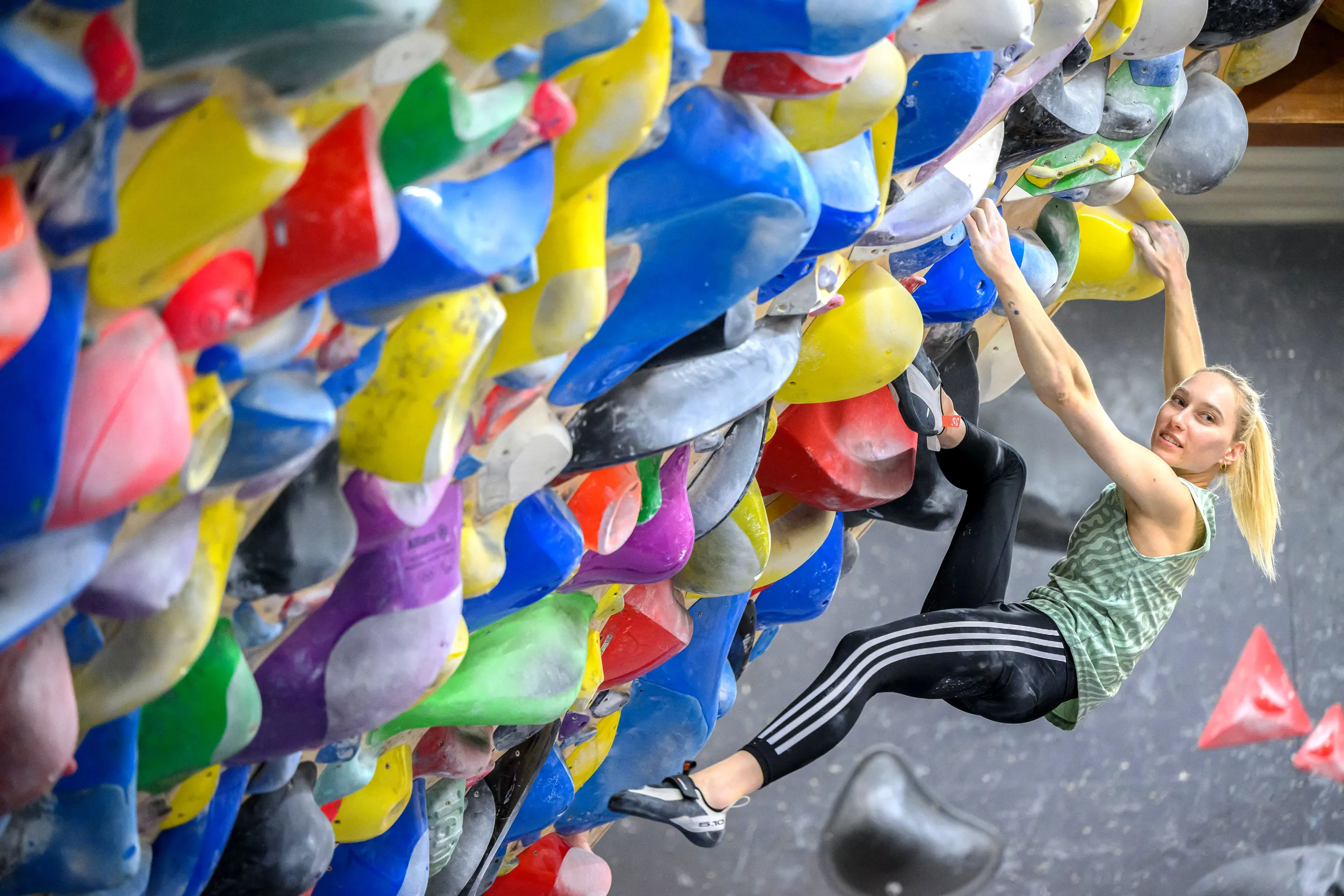 Slovenia’s Janja Garnbret climbs during a training session in Verd, some 20 km southwest of Ljubljana, on March 27, 2024. The eight-time world champion is looking to win another gold medal at the Paris 2024 Olympics Games this summer, just like she did in Tokyo 2020 when the sport debuted at the Olympics. (Photo by Jure Makovec/AFP Photo)