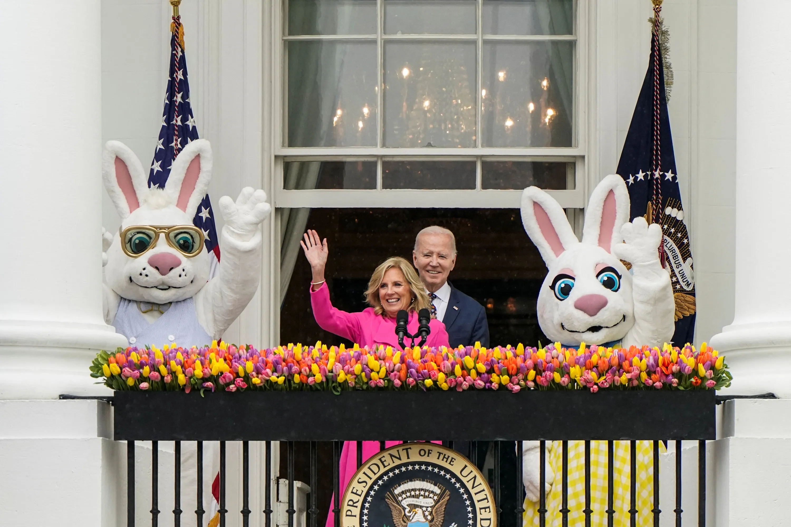 U.S. President Joe Biden and first lady Jill Biden attend the annual Easter Egg Roll on the South Lawn of the White House, on April 1, 2024. (Photo by Elizabeth Frantz/Reuters)