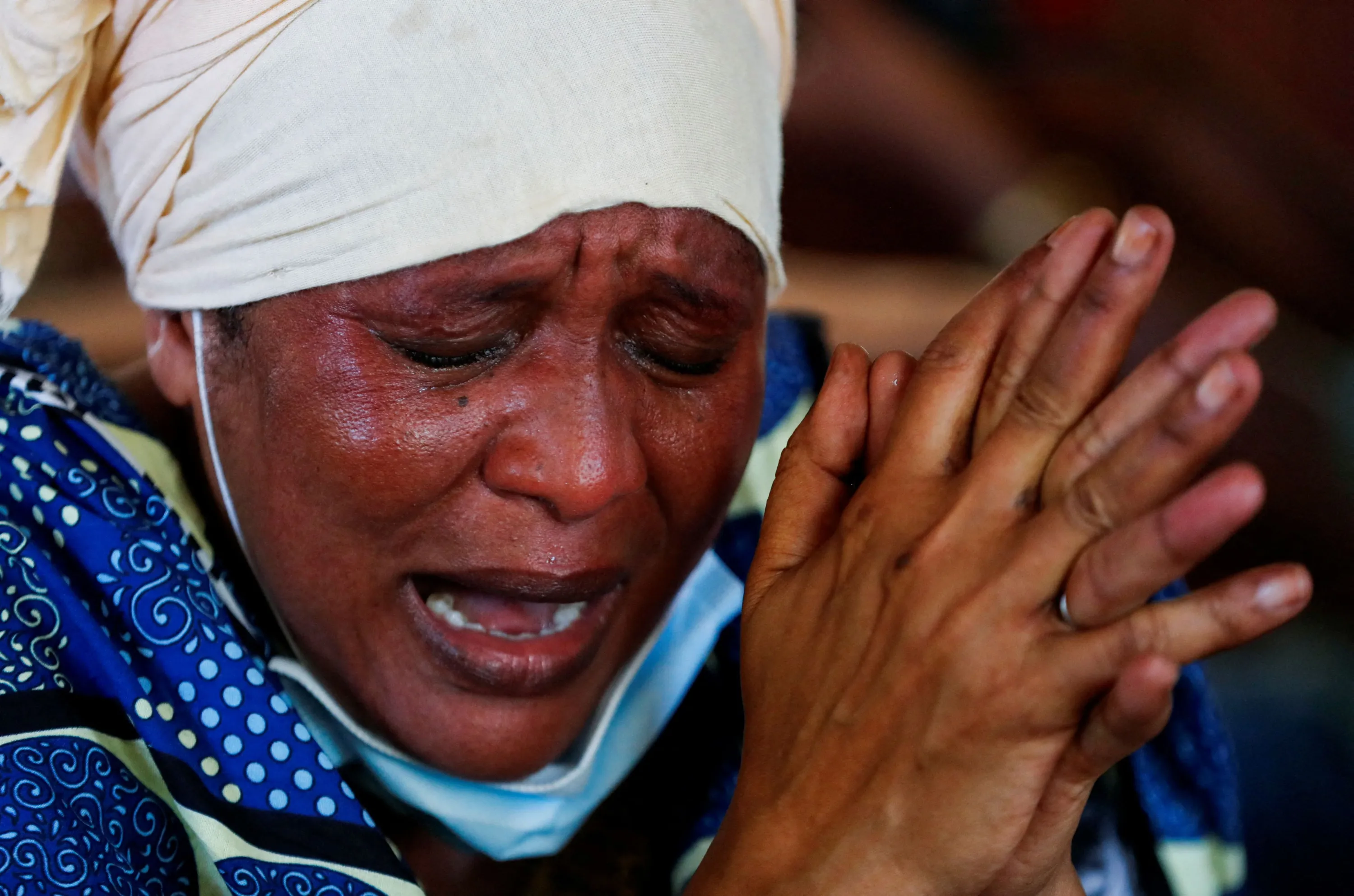 Pers Jacob, a relative reacts after viewing the exhumed remains of Esther Biriya Masha who was a follower of the Christian cult named Good News International Church, who believed they would go to heaven if they starved themselves to death in Shakahola, as the authorities begin to hand over bodies to family members, at the Malindi sub-district hospital mortuary in Malindi, Kilifi county, Kenya on March 26, 2024. (Photo by Thomas Mukoya/Reuters)