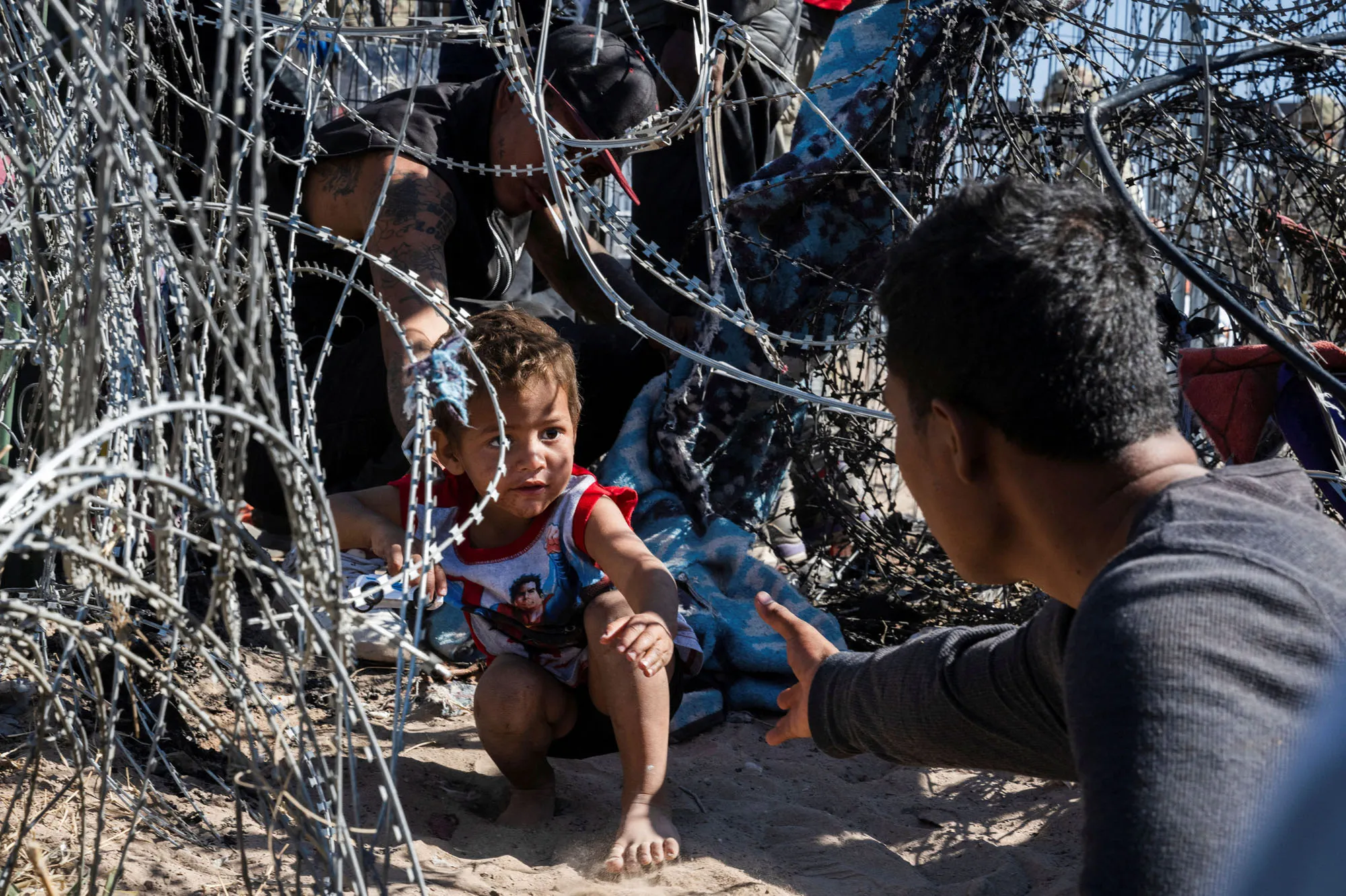 A young boy crawls through a concertina wire at the border as migrants cross from Mexico into El Paso, Texas, U.S. March 22, 2024. (Photo by Justin Hamel/Reuters)