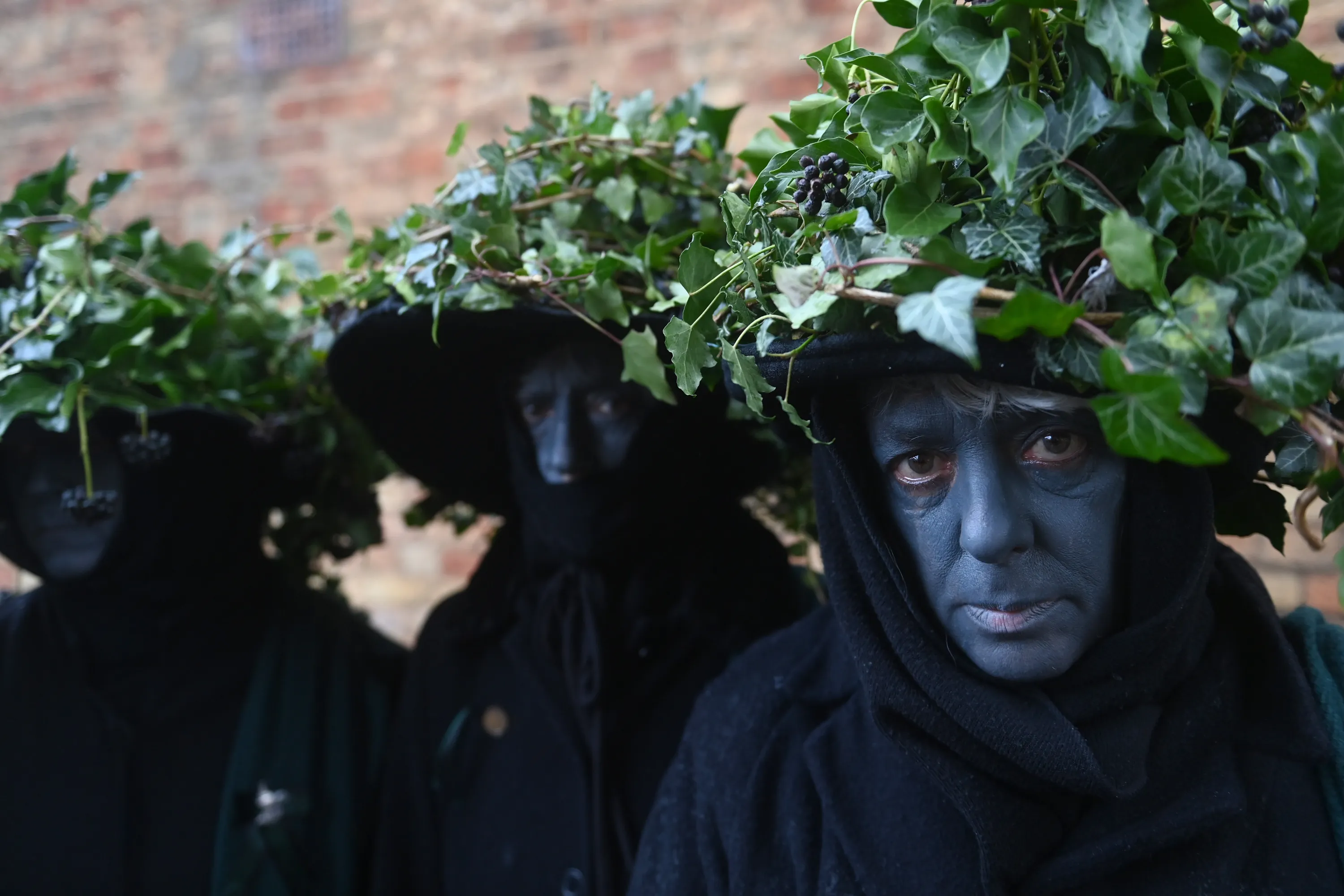 Old Glory Molly Morris dancers pose during the annual Whittlesea Straw Bear Festival parade in Whittlesea, Cambridgeshire, Britain, 14 January 2023. The traditional event, which was revived in 1980, features a “Straw Bear” and its children being led through the streets of the village of Whittlesey followed by Morris dancers. The festival traditionally took place on the day when local farm workers were supposed to return to their work, also known as Plough Monday, the first Monday after twelfth night. This year the event runs on 13-14 January. (Photo by Neil Hall/EPA/EFE/Rex Features/Shutterstock)