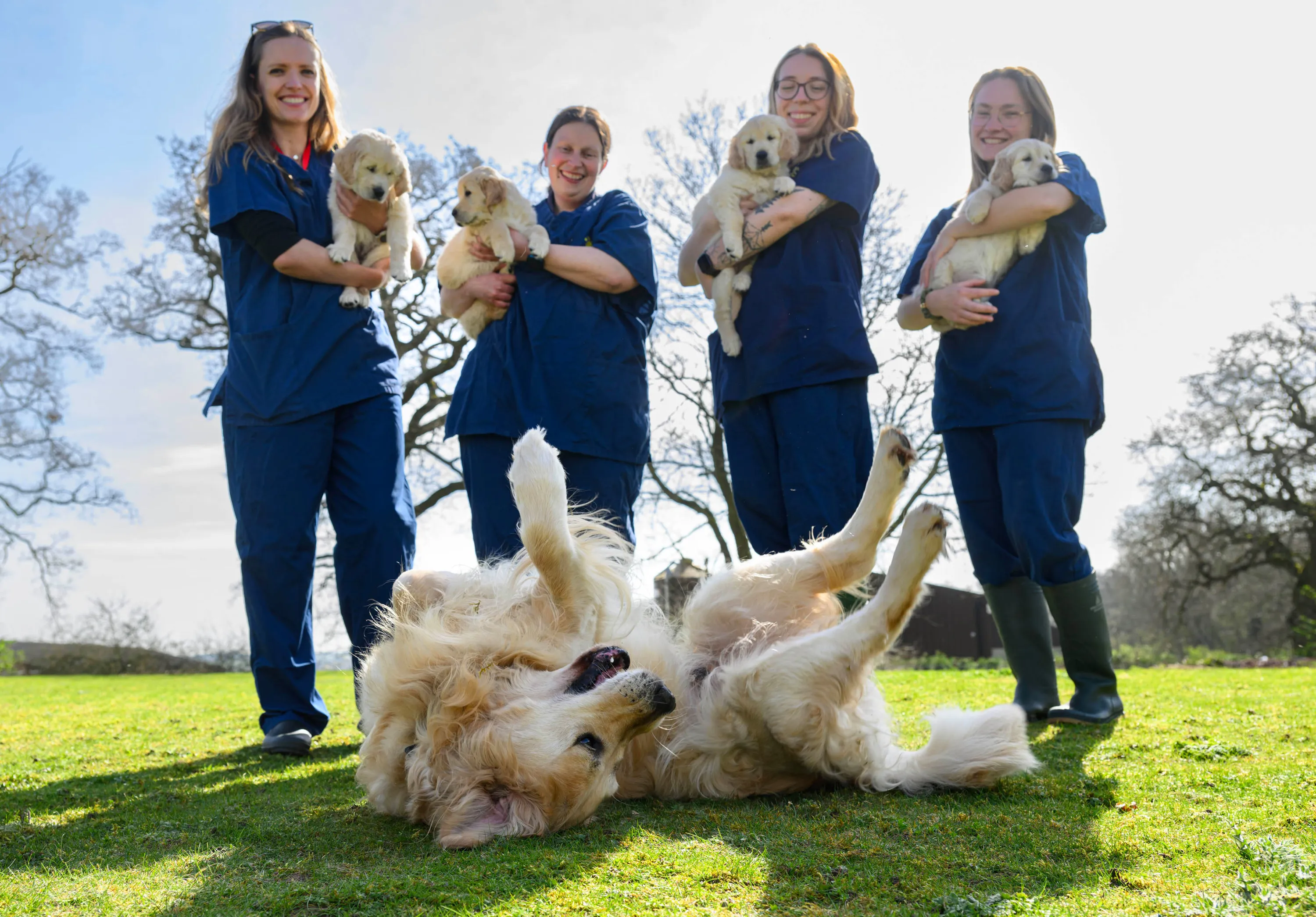 Golden retriever guide dog Trigger in Leamington Spa, UK in the first decade of April 2024 celebrates his final litter for charity Guide Dogs as he retires from his position as top stud dog at the age of nine. Father to more than 300 puppies, Trigger has offspring working all over the UK. (Photo by Doug Peters/PA Media Assignments)