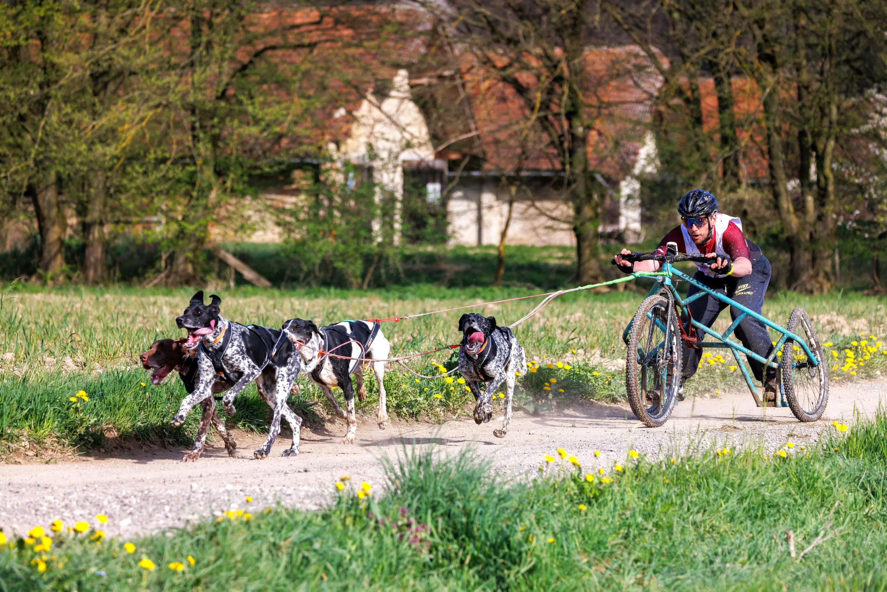 A competitor in the carting category of the Henrik Sečnik dog mushing race in Hraše, Slovenia on April 8, 2024. Over 100 dogs and their owners from Slovenia and abroad competed in the 10th edition of this international race. (Photo by Luka Dakskobler/SOPA Images/Rex Features/Shutterstock)