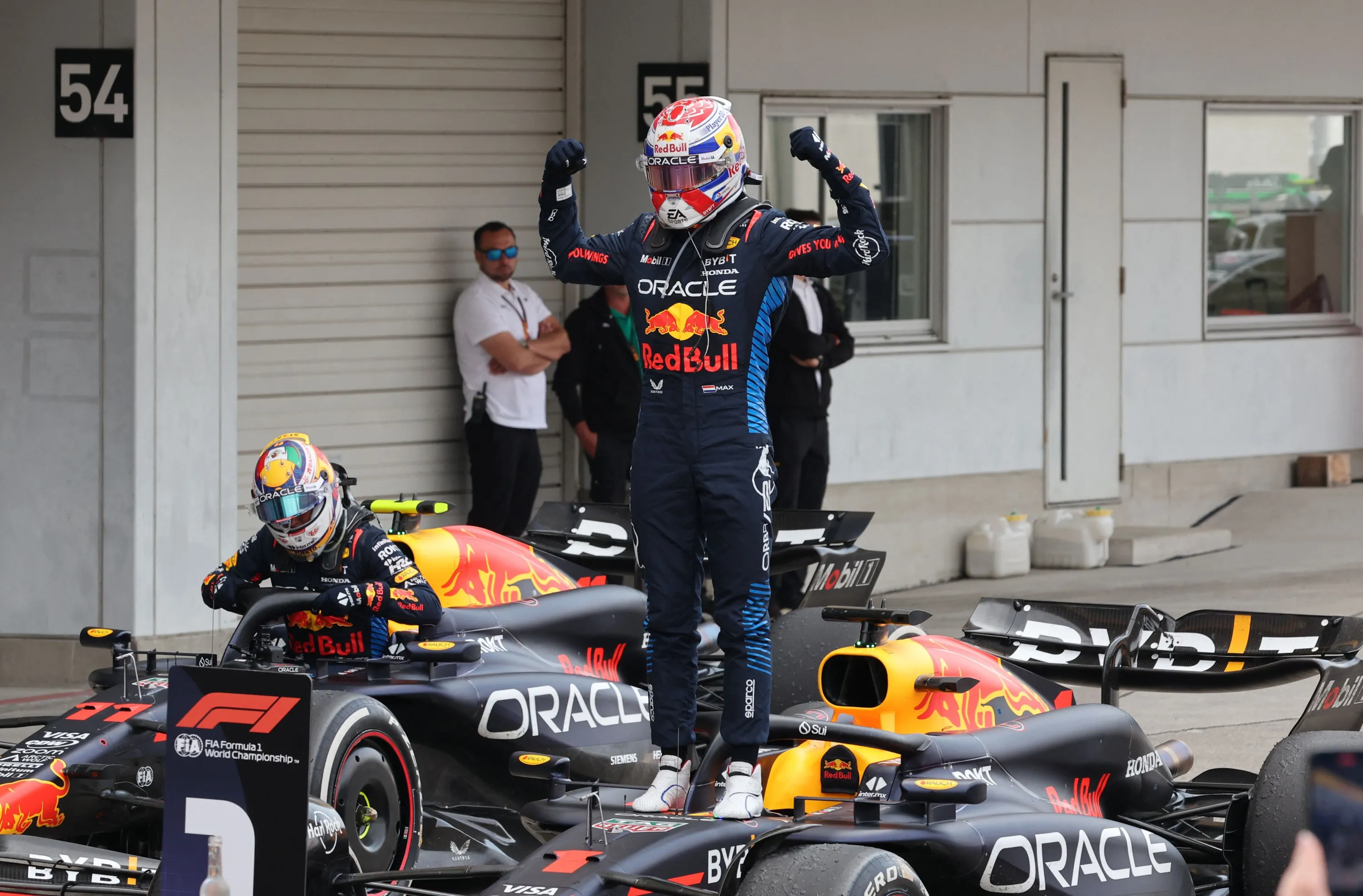 Max Verstappen, driving the (1) Oracle Red Bull Racing RB19 Honda RBTP, celebrates after winning the F1 Grand Prix of Japan at Suzuka International Racing Course in Suzuka, Japan on April 7, 2024. Sergio PEREZ, driving the (11) Oracle Red Bull Racing RB19 Honda RBTP, finished second and Carlos SAINZ, driving the (55) Scuderia SF-24 Ferrari, took the 3rd place. (Photo by Kim Kyung-Hoon/Reuters)