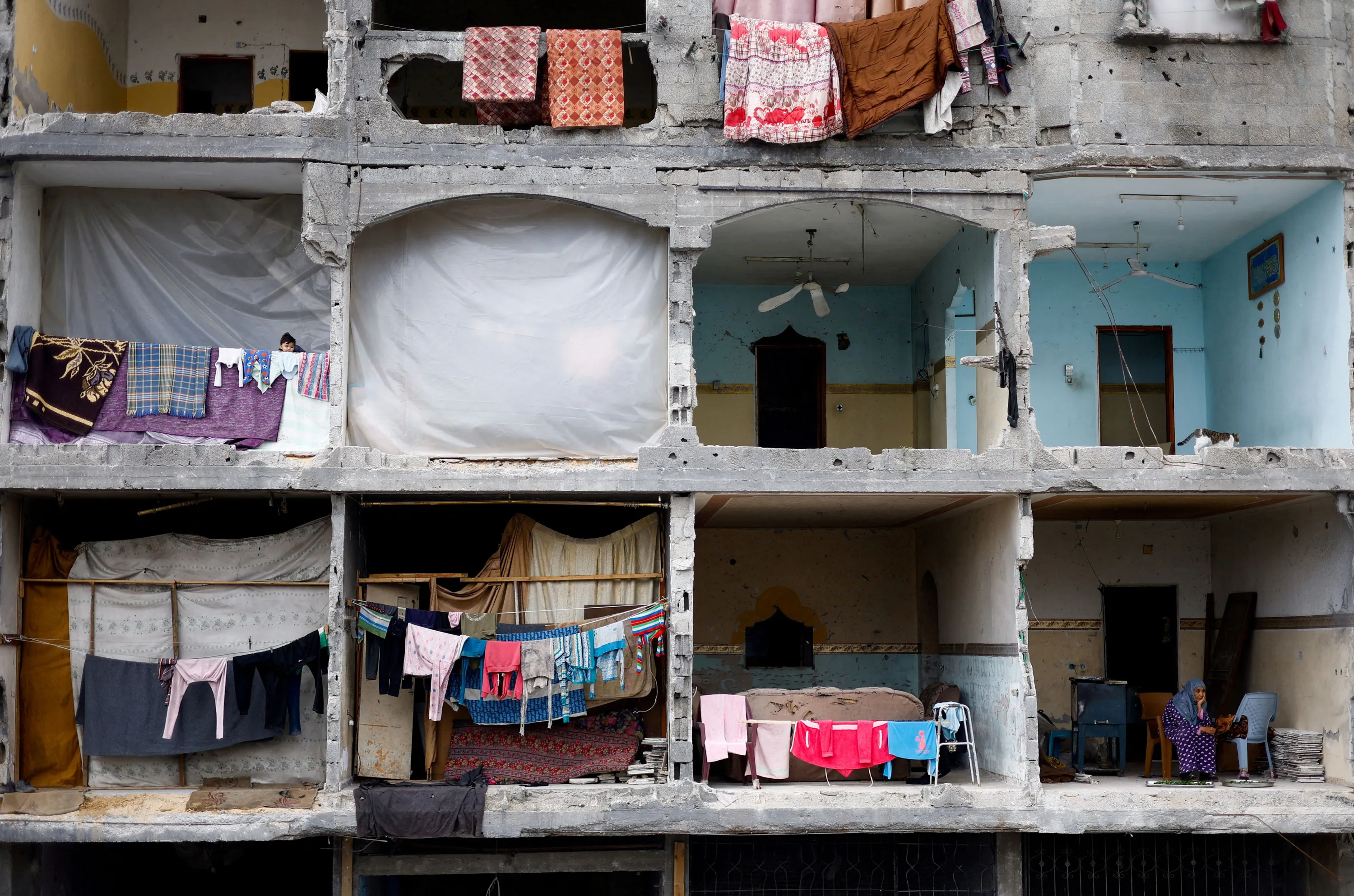A woman sits at her destroyed house, amid the ongoing conflict between Israel and the Palestinian Islamist group Hamas, in Rafah, in the southern Gaza Strip, on March 22, 2024. (Photo by Mohammed Salem/Reuters)