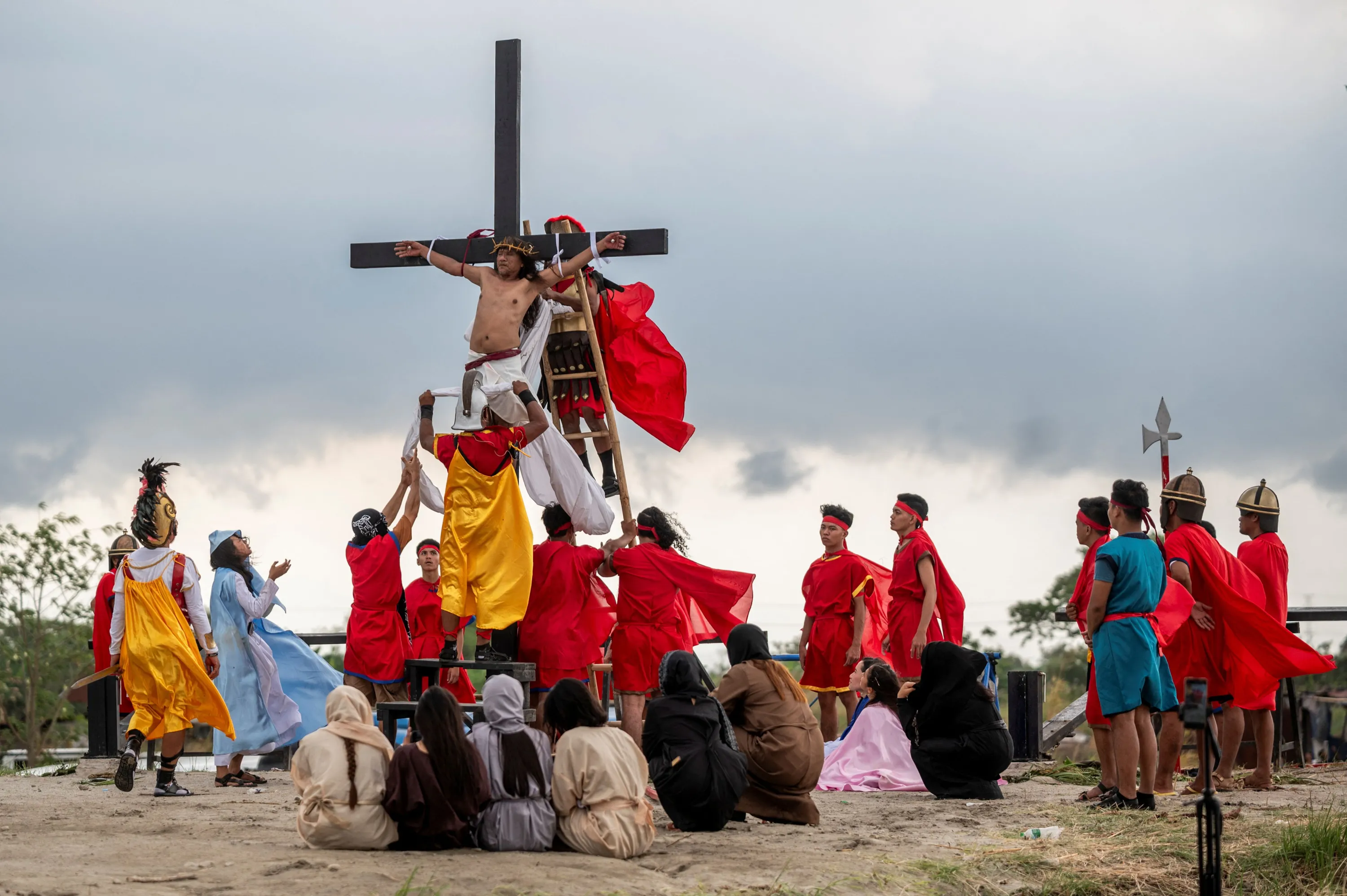 Filipino Catholic Ruben Enaje is nailed to the cross during his reenaction of the crucifixion of Jesus Christ on Good Friday, in San Fernando, Pampanga, Philippines, on March 29, 2024. (Photo by Lisa Marie David/Reuters)
