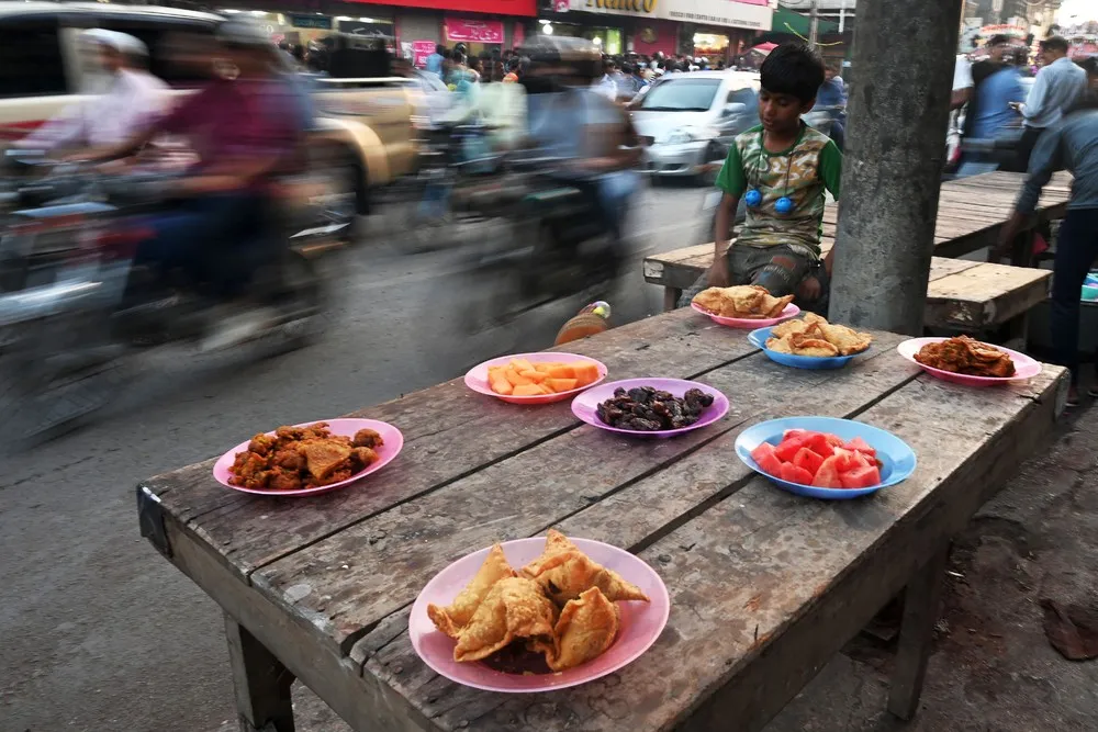 A boy waits to break his fast during the Islamic holy month of Ramadan along a busy street in Karachi on April 2, 2024. (Photo by Rizwan Tabassum/AFP Photo)