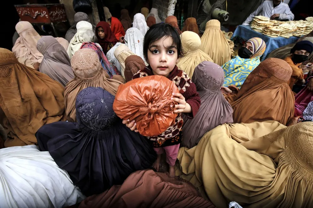 Burqa-clad women and children wait to receive free food distributed by locals to break their fast, during the fasting month of Ramadan in Peshawar, Pakistan, 19 March 2024. The Muslims' holy month of Ramadan is the ninth month in the Islamic calendar and it is believed that the revelation of the first verse in the Koran was during its last 10 nights. It is celebrated yearly by praying during the night time and abstaining from eating, drinking, and sеxual acts during the period between sunrise and sunset. It is also a time for socializing, mainly in the evening after breaking the fast and a shift of all activities to late in the day in most countries. (Photo by Bilawal Arbab/EPA/EFE)