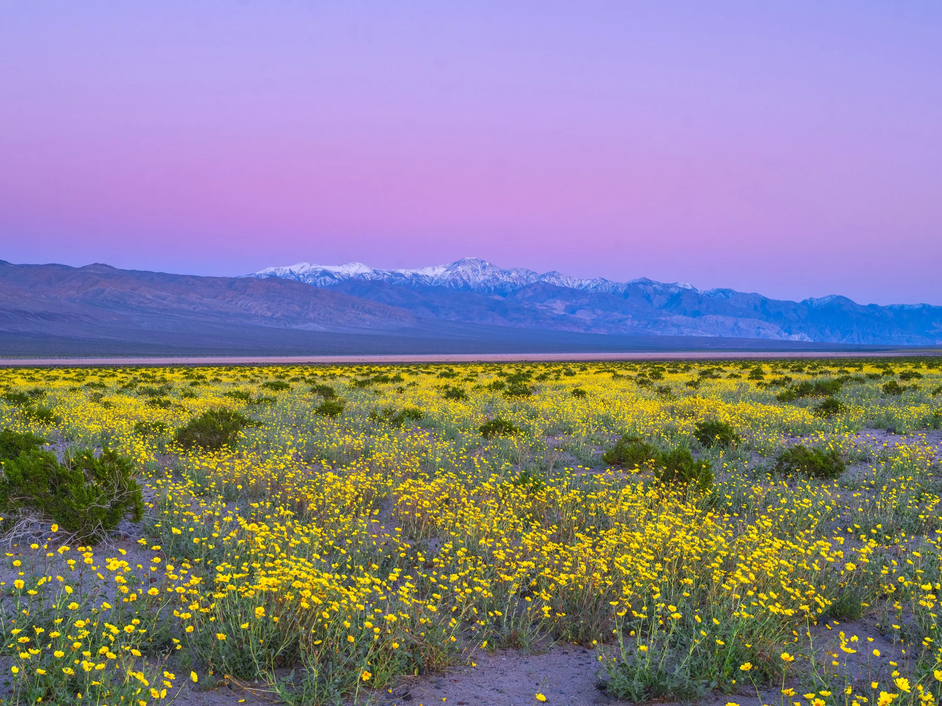 Death Valley in east California has exploded in colour as the yellow desert gold wildflower (Geraea canescens) bloom in a rare event. The rare event in the first decade of April 2024 has seen the ordinarily desolate national park burst into flower, with yellow desert gold wildflowers dominating the landscape in remarkable fashion. Death Valley is the hottest place on earth and the driest place in North America, with temperatures recorded as high as 134 degrees Fahrenheit (56.7 degrees Celsius). (Photo by Elliot McGucken/Animal News Agency)