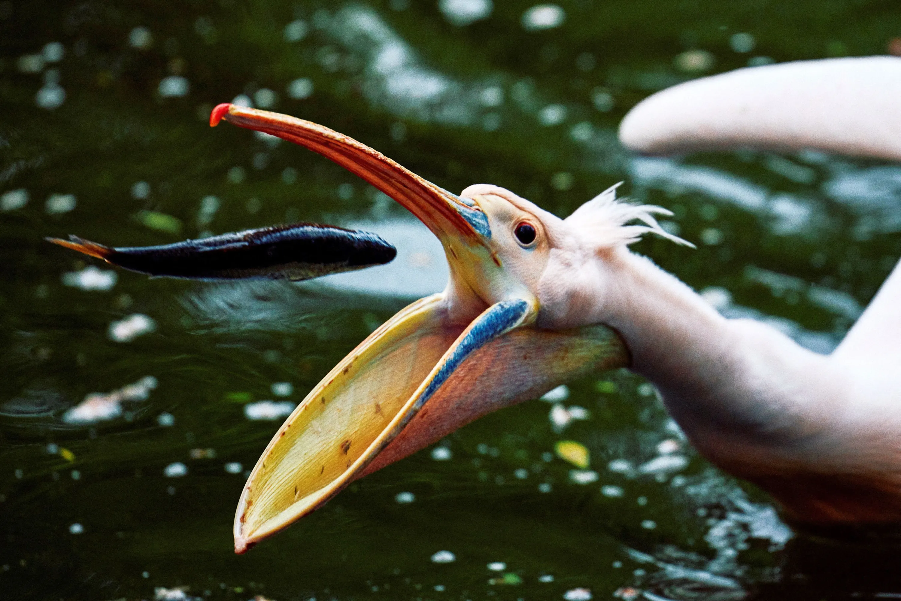 A pelican eats a fish at St James’s Park, central London, on April 8, 2024. First introduced to the park in 1664 as a gift from the Russian Ambassador, over 40 pelicans have since called the park home. (Photo by Benjamin Cremel/AFP Photo)