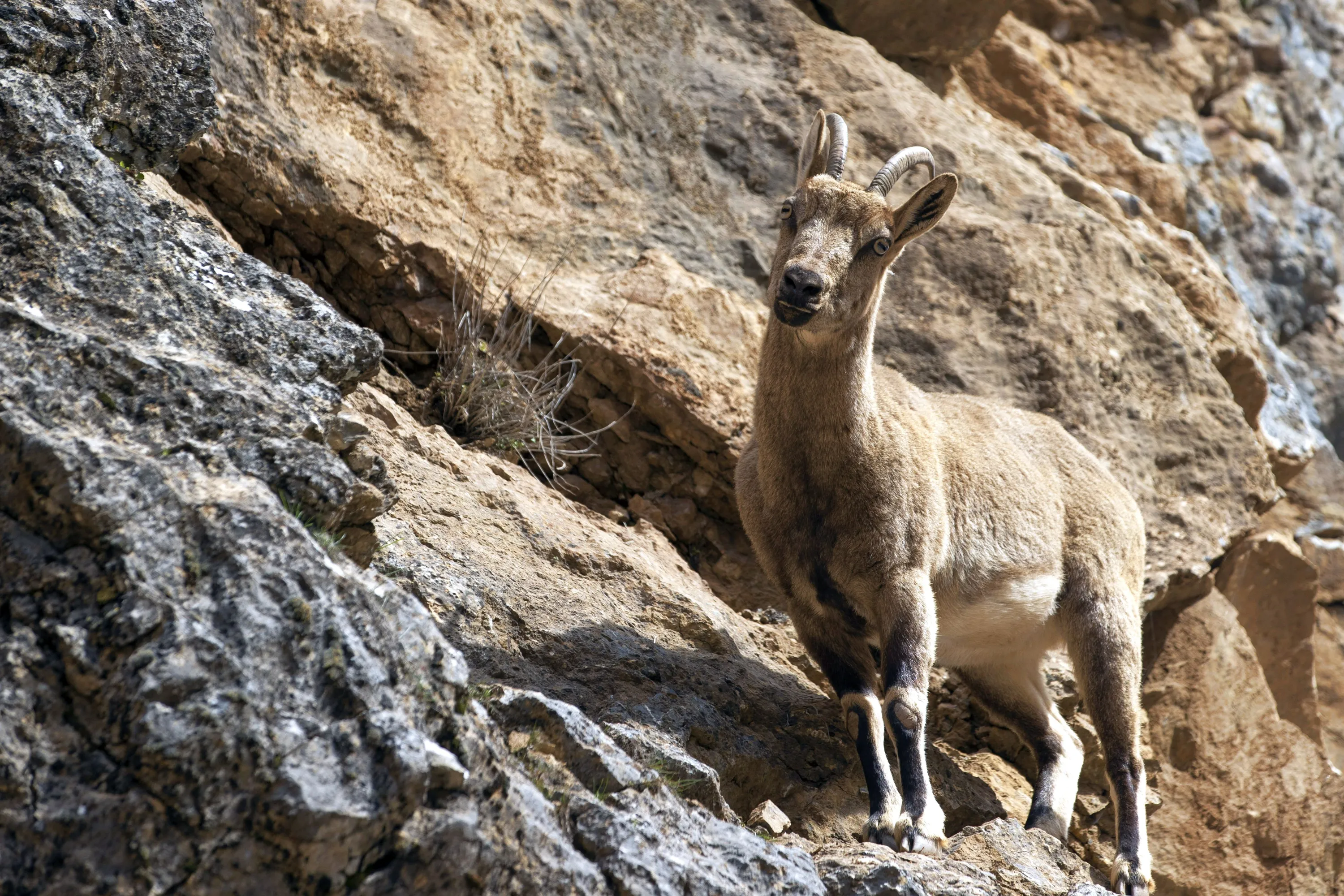 A view of wild goat which is under protection as feeding on the steep cliffs at Munzur Valley National Park in Tunceli, Turkiye on March 29, 2024. (Photo by Sidar Can Eren/Anadolu via Getty Images)