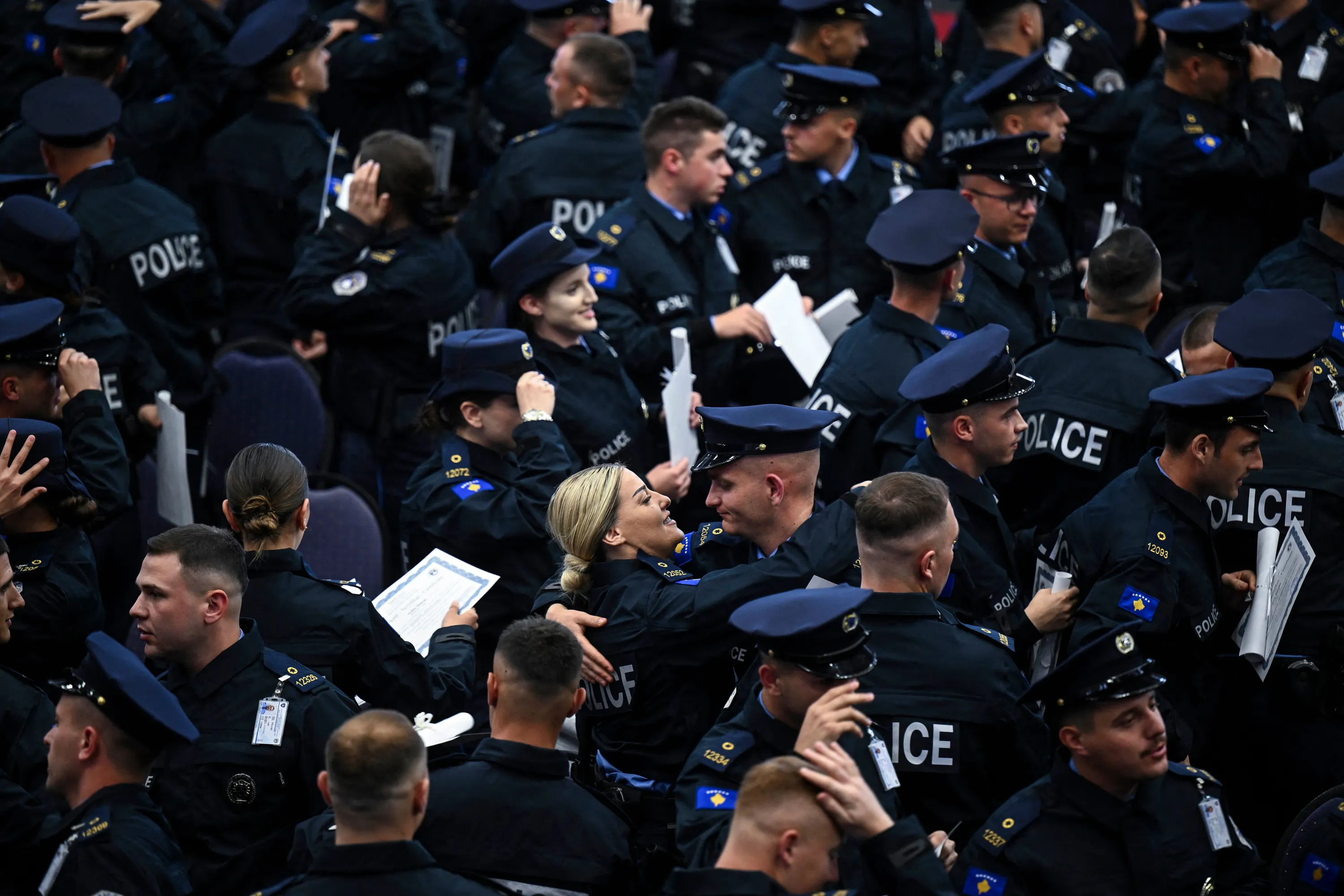New members of Kosovo Police force attend the graduation ceremony of the 59th generation of the Kosovo Police, in Pristina, on April 18, 2024. (Photo by Armend Nimani/AFP Photo)