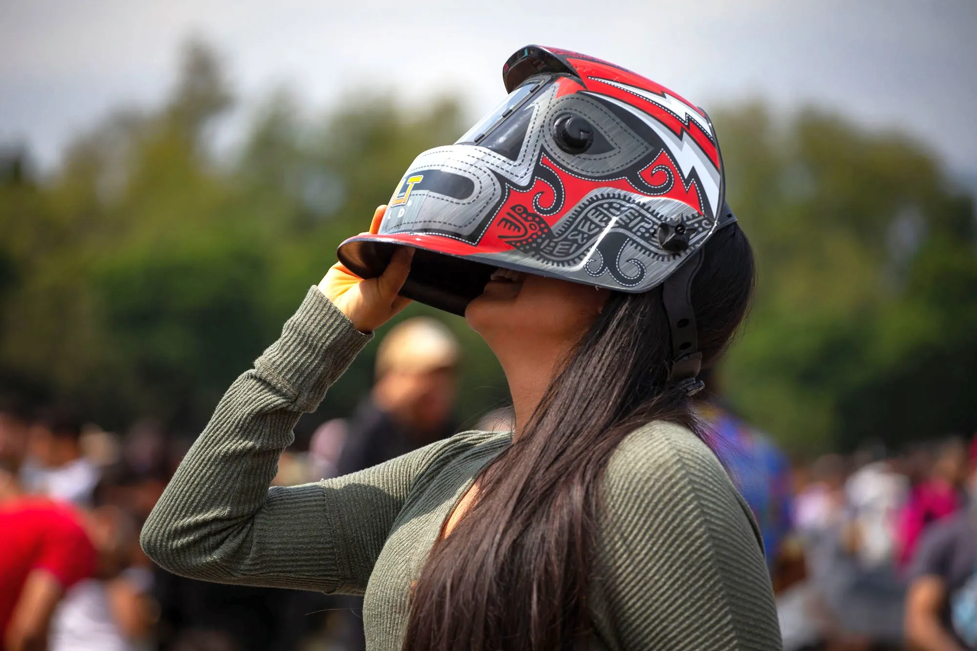 A woman observes the Annular Solar Eclipse at the facilities of the National Autonomous University of Mexico (UNAM) in Mexico City, Mexico on October 14, 2023. (Photo by Daniel Cardenas/Anadolu via Getty Images)