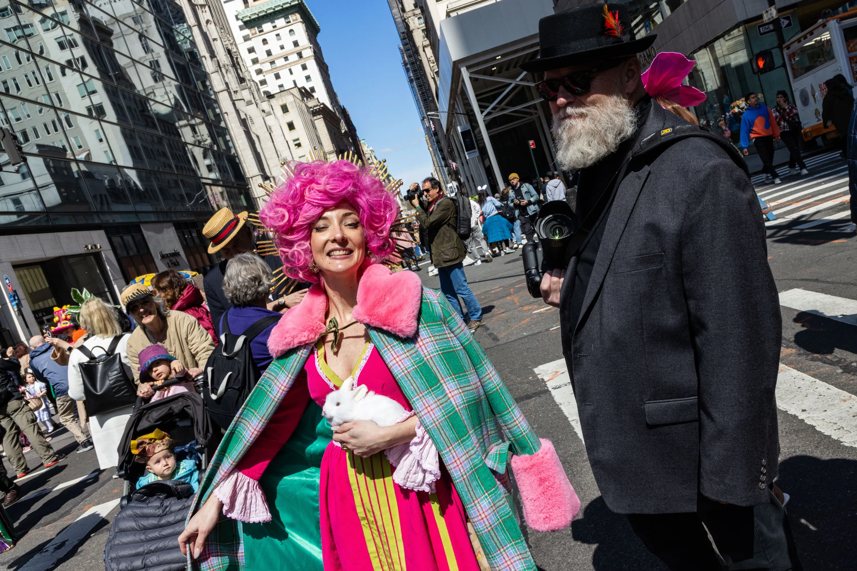 People walk in the Easter parade outside Saint Patrick's Cathedral on March 31, 2024 in New York City. (Photo by Stephanie Augello/Rex Features/Shutterstock)